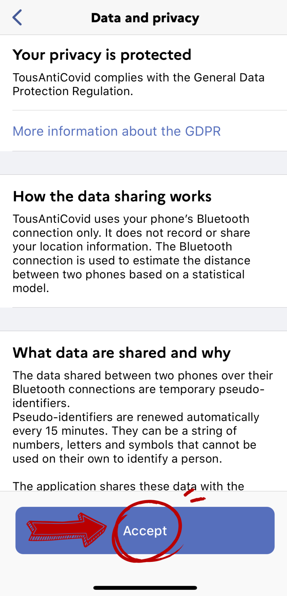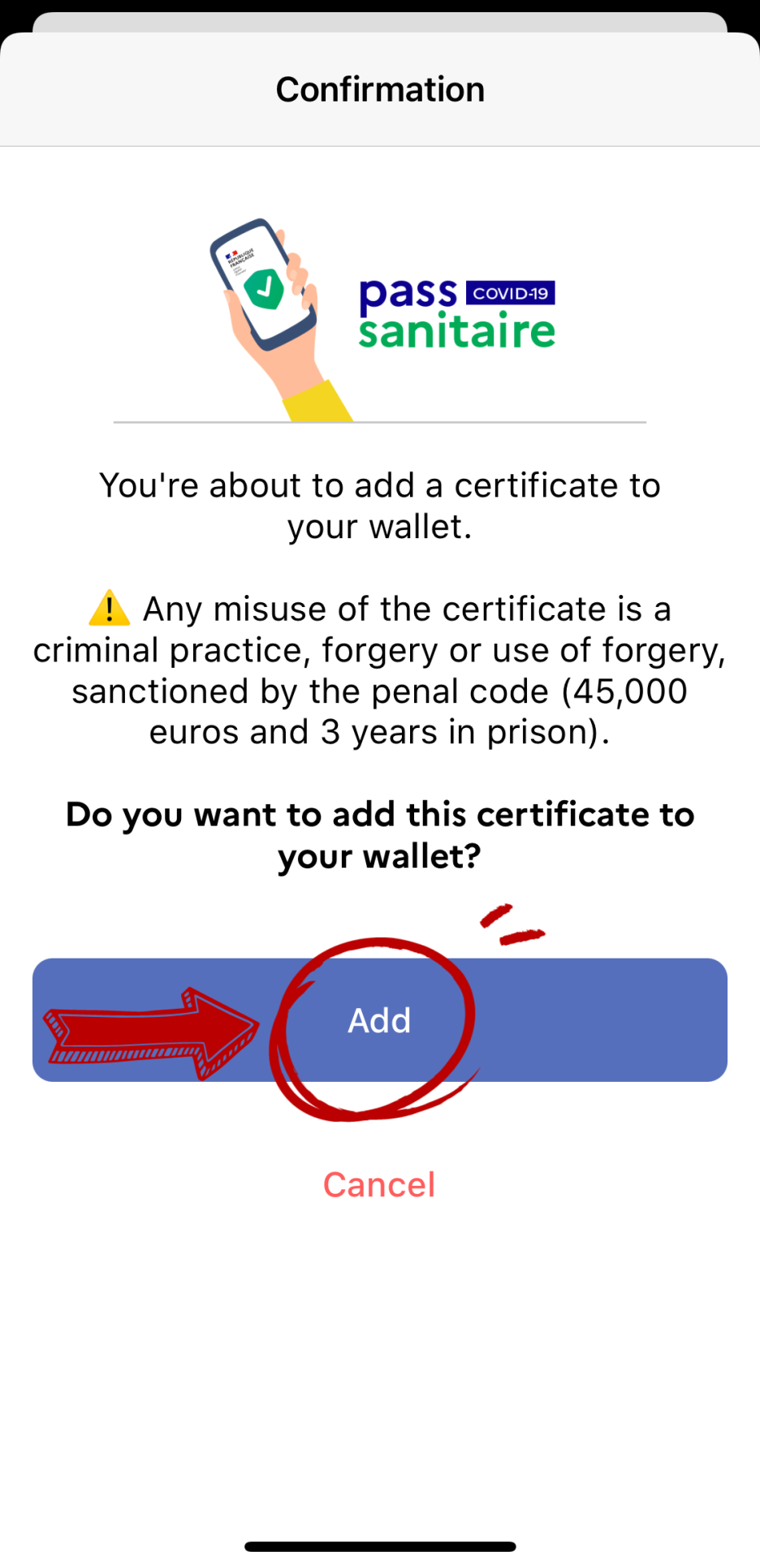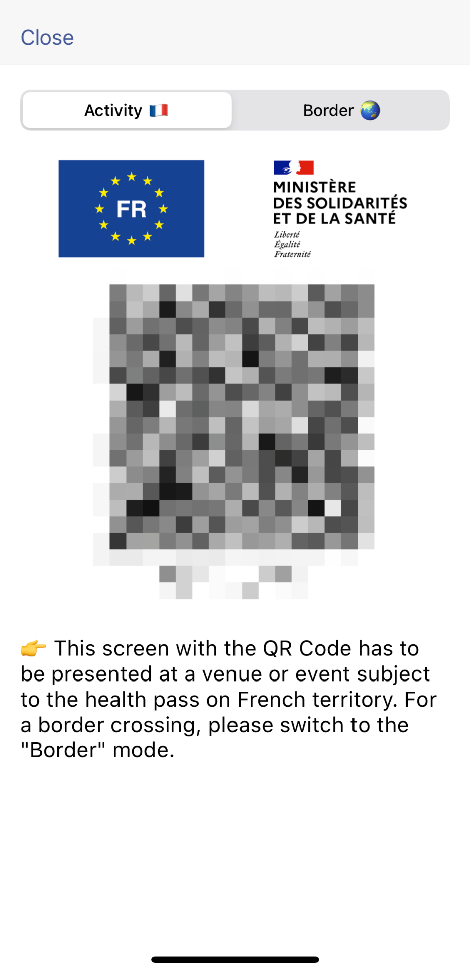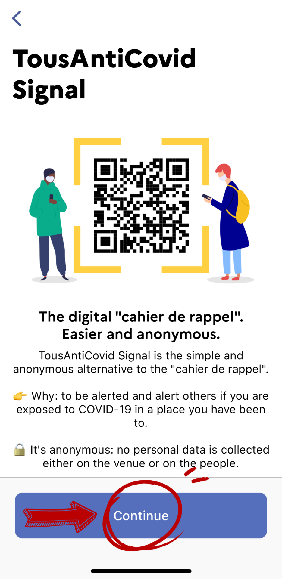 이 서류에 나와 있는 QR 코드를 AntiCovid 앱에서 스캔하면 앱에서 자동으로 QR 코드가 생성되어 프랑스에서 QR 코드를 요청 받았을 때 쉽게 제시할 수 있다. 따로 회원가입을 할 필요도 없다. 아래 프로세스에 따라 진행하면 된다.