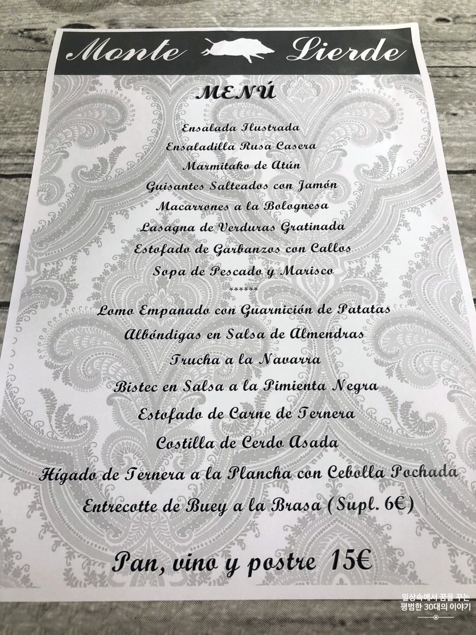 어쨌든 자동차 연료도 채울 겸 잠시 머무르면서 우리 몸에도 연료를 채우기로 하고 마을에 있는 몇 안 되는 음식점 중 발길 닿는 데로 간 곳이 Restaurante Monte Lierde이다. 겉보기와 달리 안의 공간은 꽤 넓었고 화장실도 깨끗했다.