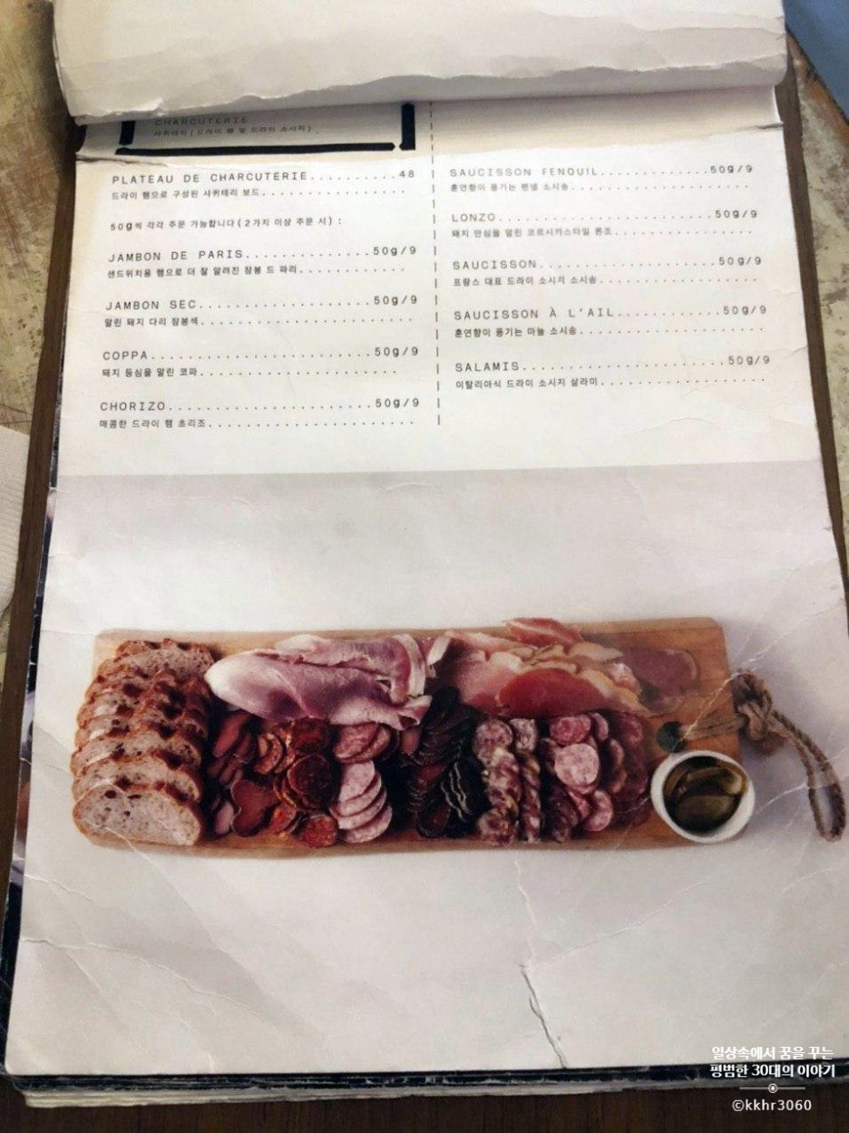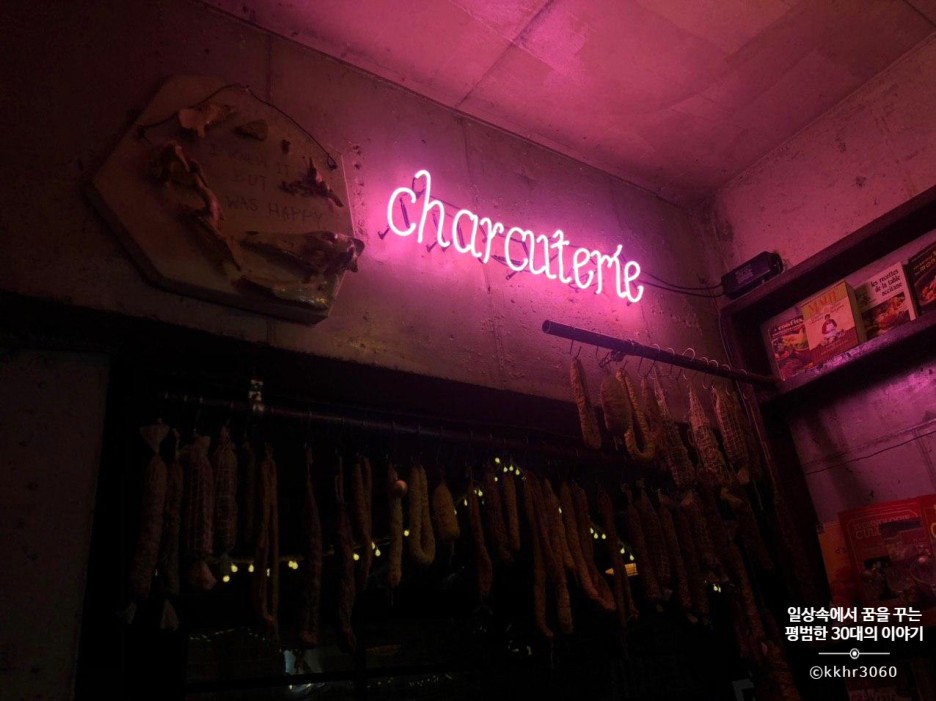랑빠스81은 1층(2층처럼 보이는 1층)에 위치해있다. 지하 1층에는(반지하)에는 랑빠스에서 운영하는 샤퀴테리 스토어가 있는데 '사퀴테리'라는 돼지, 가금류, 수렵육, 양, 소의 고기와 부속 및 내장 등을 이용해 만드는 가공식품을 판매한다. 내가 좋아하는 하몽, 초리소, 살치촌, 로모, 푸에트, 파테와 같은 것들을 판다.