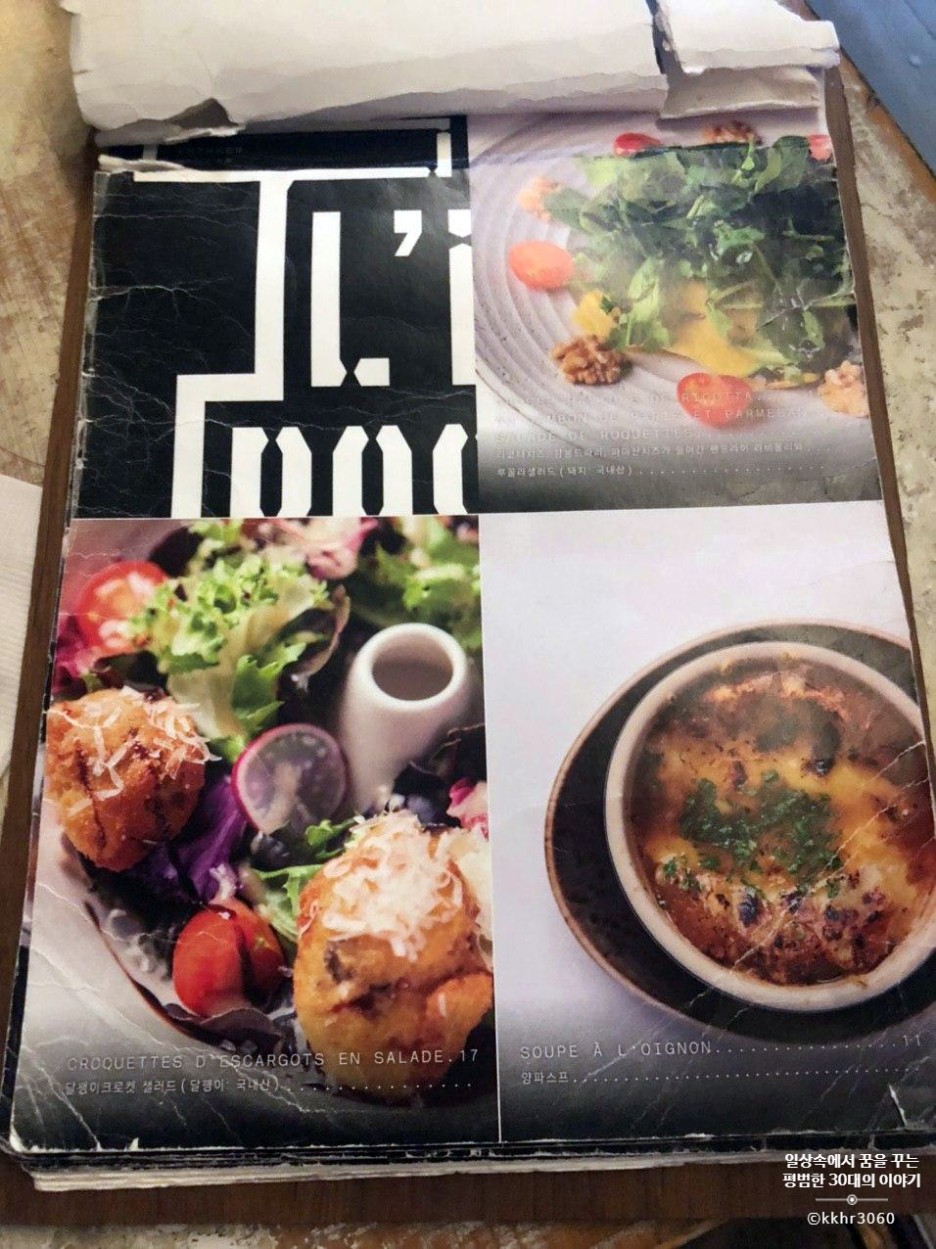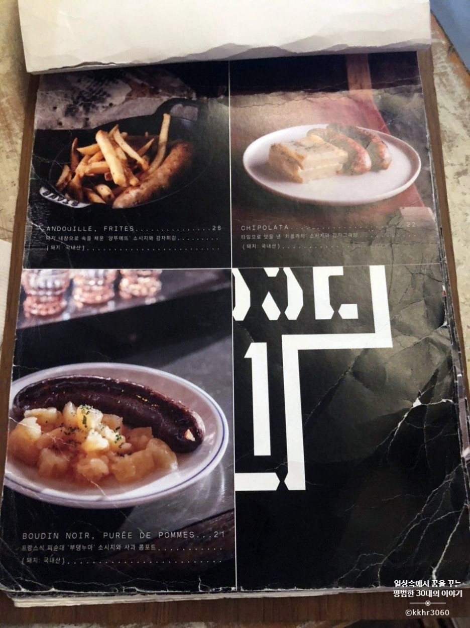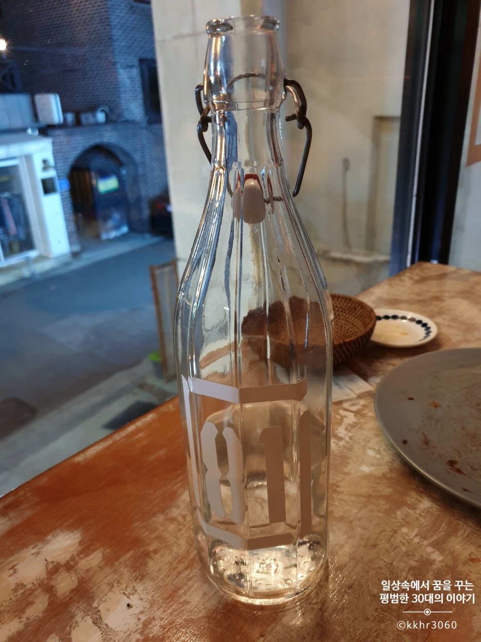 프랑스에 오래 살았던 짝꿍이 이 물병을 보니 프랑스 생각이 난다고 여기가 진정 프랑스 식당 맞구나 하며 좋아했다. 프랑스에서는 대부분 식당에서도 수돗물을 이런 병에 받아서 제공한다고 한다. 짝꿍의 나라 스페인만 해도 지역마다 다르겠지만 내가 갔던 지역들은 프랑스와 달리 대부분 식당에서 생수를 사 마셔야 했다.