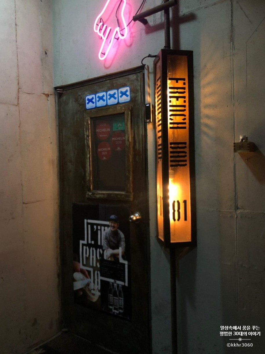 올해 초 2월, 예전부터 짝꿍이 가보고 싶다던 프랑스 식당 랑빠스81을 급작스럽게 가게 됐다. 예약을 하지 않으면 방문하기 어려워 예약을 하려 해도 주말에는 금방 예약이 꽉 차서 방문이 어려웠었다. 저녁 7시 30분이 마지막 예약 가능 시간이고 그 이후로는 방문했을 때 자리가 있으면 식사가 가능하다고 하여 몇 번 8시쯤 방문을 했었으나 실패! 연남동 근처에 볼일을 보러 갔다가 혹시나 하는 마음에 토요일 저녁 8시쯤 갔는데 이게 웬걸 자리가 널널한게 아닌가! 아마도 코로나바이러스와 더불어 갑자기 추워진 날씨 탓에 사람들이 별로 없었던 것 같다. 게다가 자리도 창가 좌석으로 안내를 받아 아직 식전인데도 노래가 절로 나왔다.