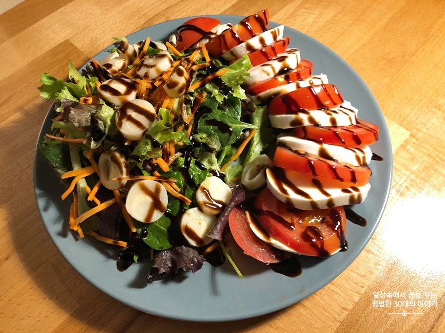 샐러드 - 모짜렐라치즈, 토마토, 샐러드 야채, 당근, Palmito, 발사믹 크림소스, 트러플 올리브오일