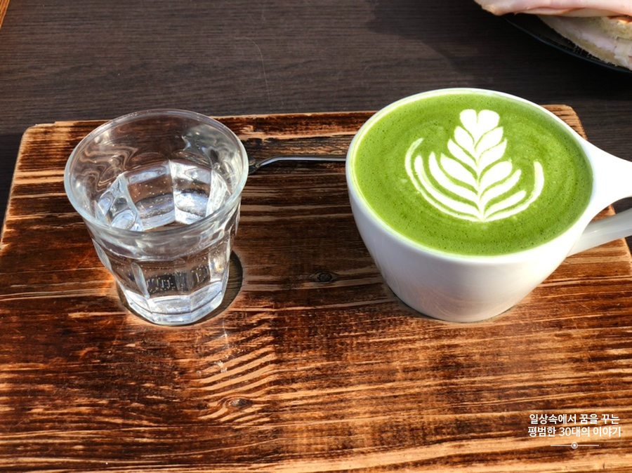메뉴: 녹차라떼, 햄&치즈 샌드위치