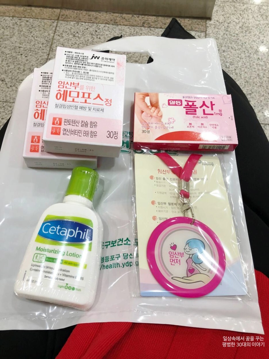 어쨌든, 나는 영등포구에 거주하고 있기 때문에 임신확인서를 들고 영등포구 보건소를 방문하였다. 영등포구 보건소는 영등포구청 바로 뒤편에 위치하고 있는 하얀색 건물이다. 1층에 모자보건실이 있는데 코로나 때문에 안에 들어갈 수는 없고 밖에 임산부 상담 공간에 앉아서 기다리면 담당 공무원분이 나와 나의 신분증과 임신확인서를 확인하신다. 그러고 나서 보건소에서 필요로 하는 정보(이름, 주민번호, 주소 등)를 양식지에 기재하면 임신 및 출산 시, 받을 수 있는 혜택이 적힌 안내문과 함께 내가 그토록 고대하던 임산부 배지(분실 시, 지하철에서도 임산부 배지 받을 수 있는데 따로 필요한 서류는 없다고 하셨음), 핸드크림, 엽산 1통(엽산은 임신 12주 복용분까지만 제공) 그리고 철분제 2통(임신 16/20주~분만예정일까지 복용분을 제공, 최대 5개월분 제공)를 제공해 준다.(방문 일 기준의 임신 주수에 따라 차등 공급) 나는 이미 12주가 다 돼가던 시점에 보건소를 방문했기 때문에 엽산은 한 통만 제공해 주셨다. 철분제는 추후 재방문하면 추가로 제공해 주신다고 했다.