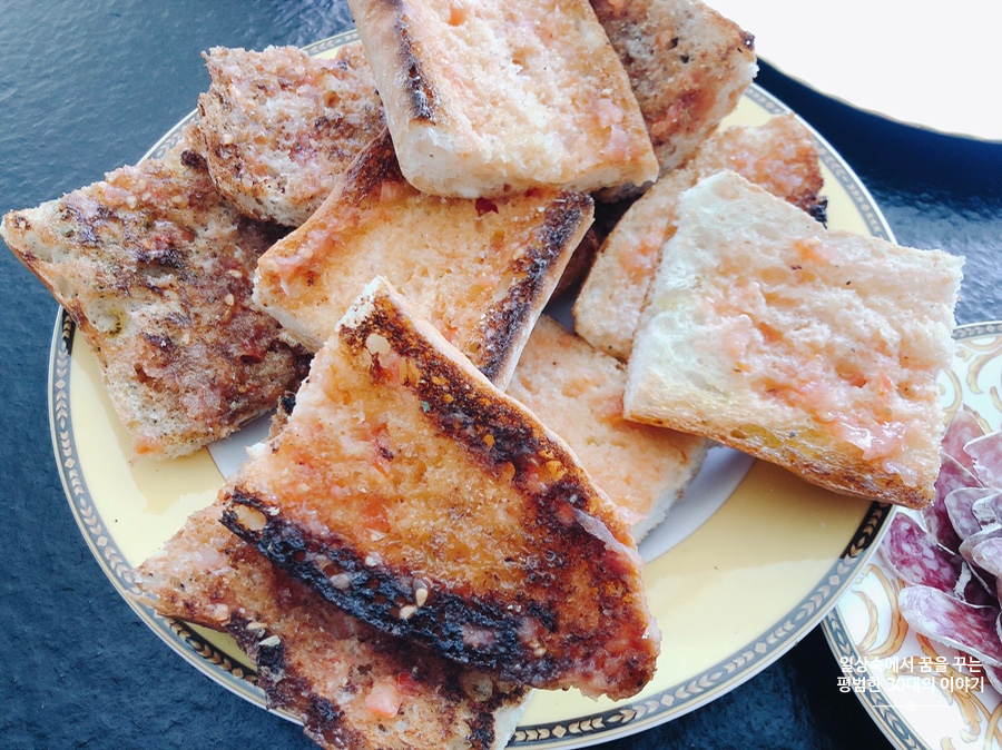 Pan con tomate - 토마토, 마늘, 올리브오일, 소금, 바게트