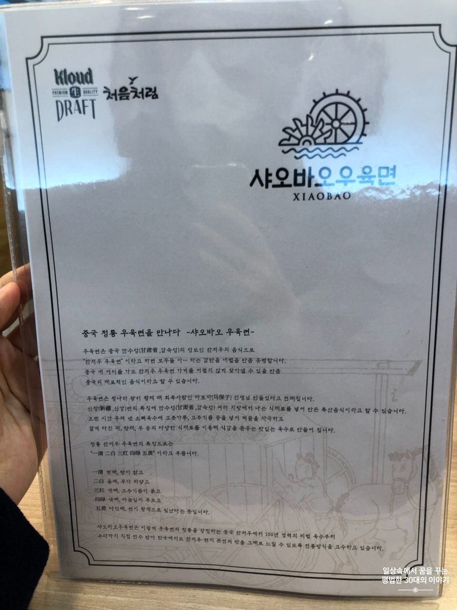 남동생과 함께 주말에 둘이 데이트한 날 간 샤오바오우육면, 이전부터 가보고 싶었는데 계속 미뤄두고 있다가 가지 못했던 곳으로 대만식 우육면을 생각하고 갔었다. 나는 여기만 있는건줄 알았는데 알고봤더니 지점이 여러군데 있더라. 내가 간 곳을 구로디지털단지역점이다. 평일에는 손님이 많다는데 주말에 가서인지 손님이 그다지 많지는 않았다.