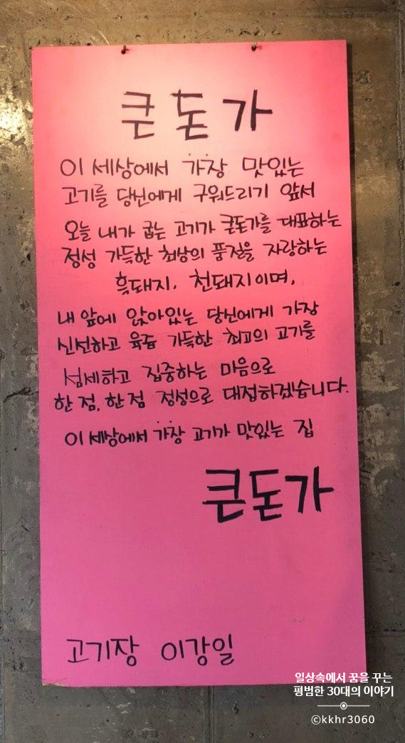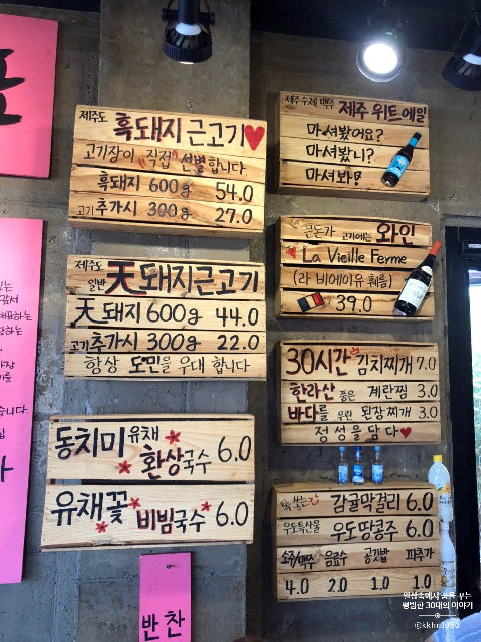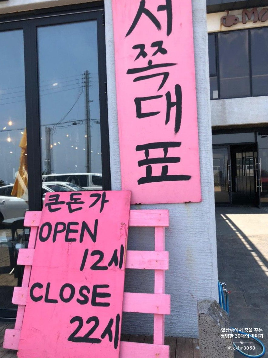 어쨌든 사계해변 주변에 있는 식당들 중에서 메뉴가 가장 끌려 큰돈가에 가게 되었다. 제주도를 여행하면 꼭 한 번은 먹게 되는 흑돼지가 이 식당의 주메뉴이다.