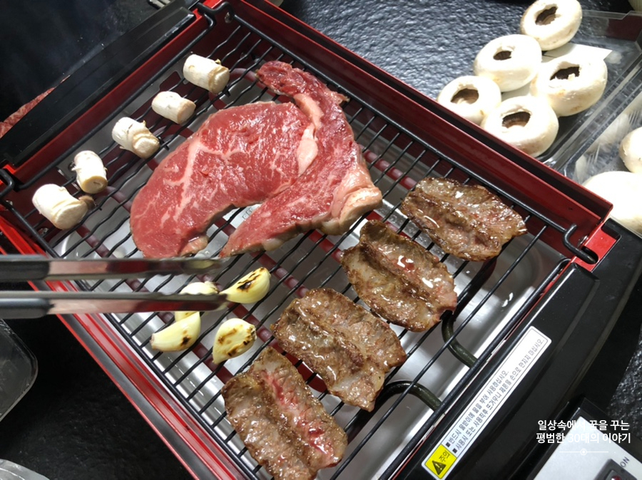 메뉴: 토요일 저녁에 먹고 남은 삼겹살, 한우 구워먹기