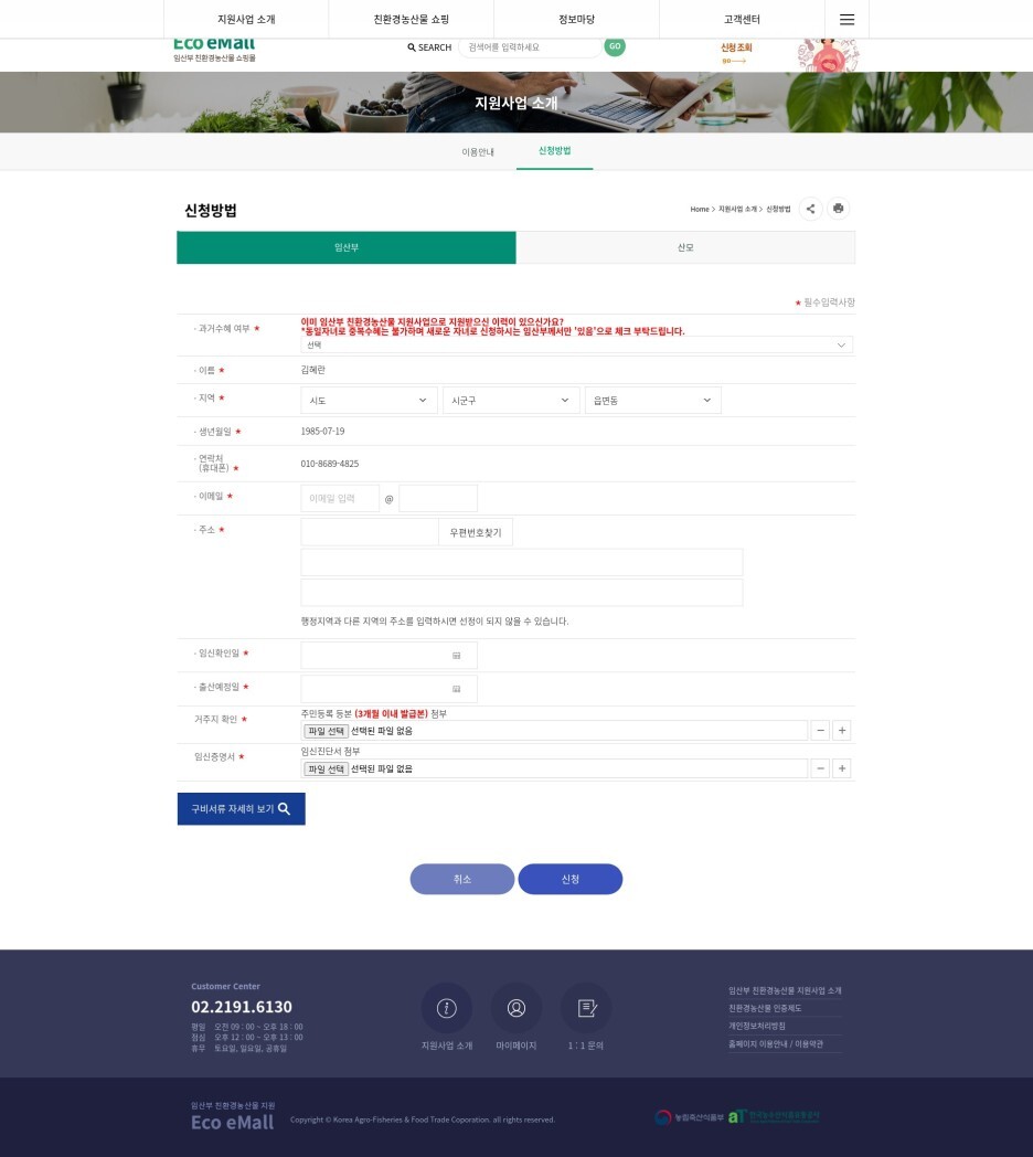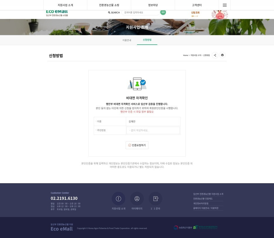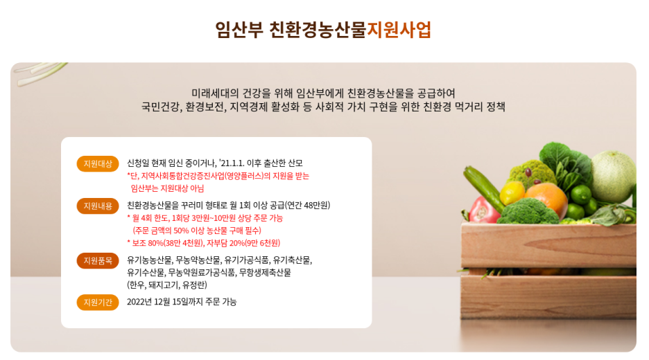 www.ecoemall.com 웹사이트에서 임산부 친환경 농산물 꾸러미 지원 사업 신청