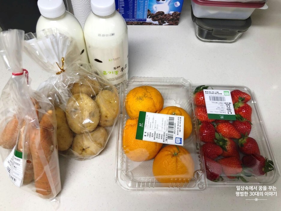 3. 신나게 주문하기! 그런데 각 제품 별 리뷰를 보니 리뷰가 좋은 제품이 많지 않다. 그나마 과일, 야채 일부 그리고 유제품 리뷰가 괜찮은 편이라 그 제품군 위주로 주문했다. 정부에서 384000원(주문시 80%는 이 포인트에서 자동 차감, 본인부담금 20% 결제)을 지원해주는데 생각보다 제품 가격이 시중 판매가보다 비싸서 금방 사용할 듯 하다.