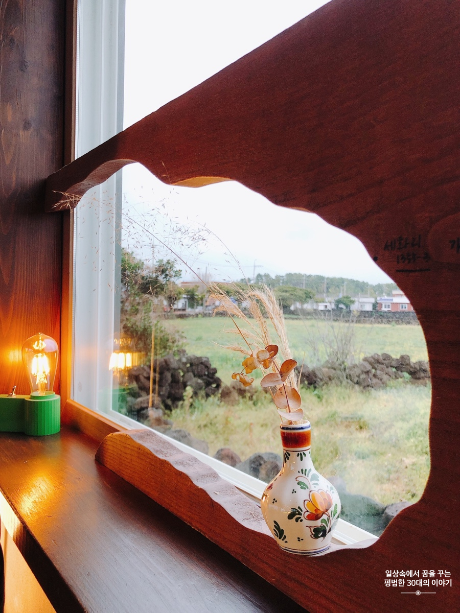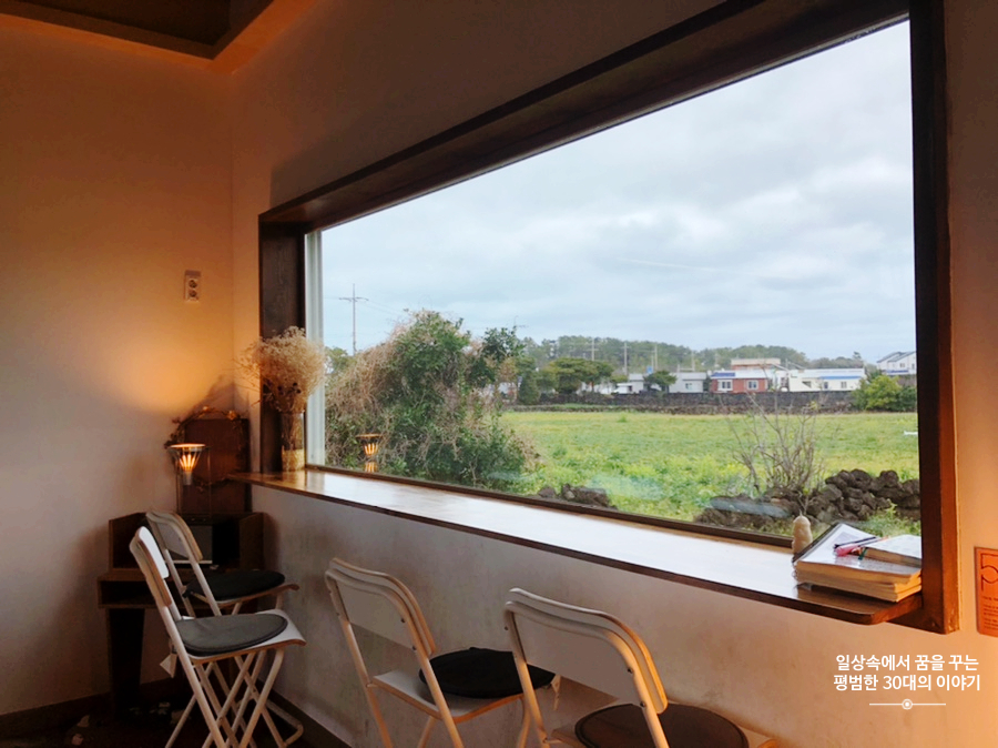 항상 사람으로 붐비는 세화에 위치한 카페임을 감안했을 때, 주위가 고요하고 고즈넉해서 무척 좋았고 카페 앞 뒤에 있는 큰 창으로 보이는 풍경이 제주도스러워서 좋았다. 공간은 넓은 편이 아니라서 사람이 많은 시간대에 왔다면 헛걸음 할 가능성이 높을 것 같다.
