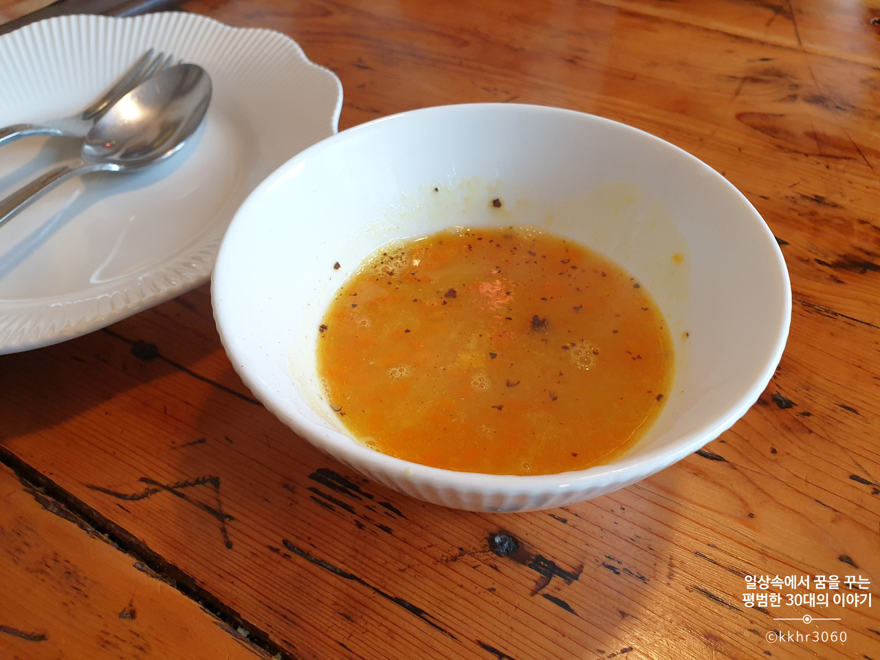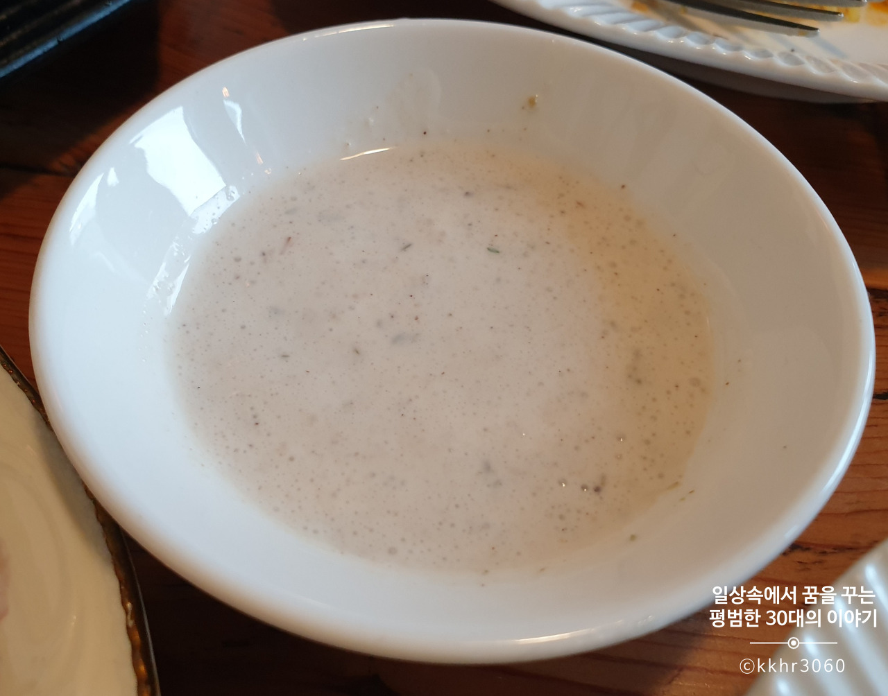 식전 수프로 렌틸콩 수프가 나왔는데 고소하니 맛있었다.