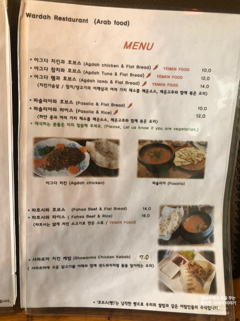 나중에 안 사실인데 알고보니 지금 와르다레스토랑의 주인은 아래의 두분이 아니다. 새로운 한국인 부부 두 분이서 하고 계신다. 어쩐지 내가 기사에서 봤던 그 얼굴이 아니더라 싶더라. 세상사 그 뒷이야기까지는 알 수 없지만 다음번엔 이 기사에 나와있는 두 부부의 진짜 예멘식당에 찾아가보리라!