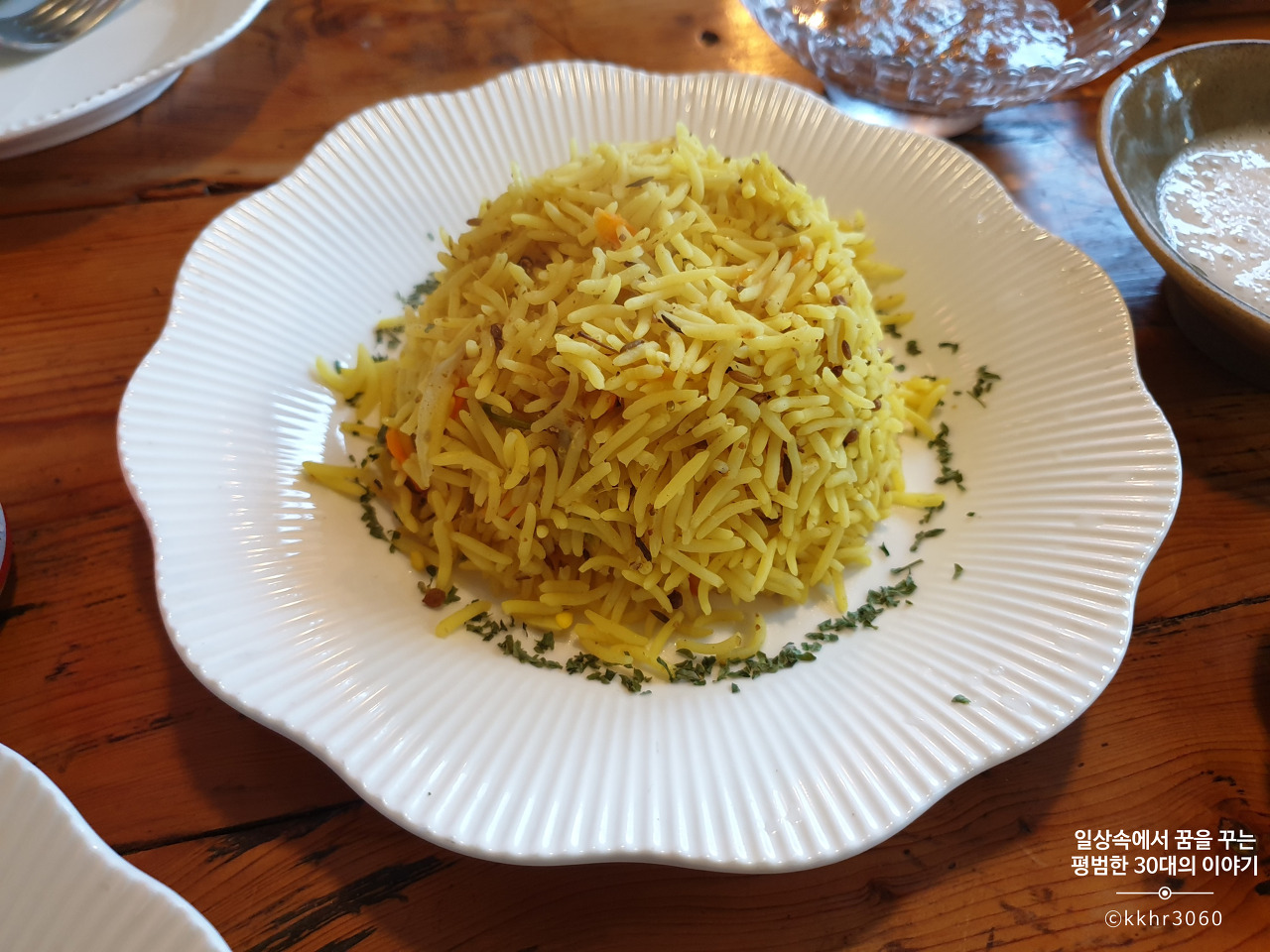 얼마 지나지 않아 나온 양고기 쌀타 (15000원). 이미 우리가 주문한 아그다 치킨과 호브스 (10000원) 메뉴에 호브스가 나오기 때문에 2000원을 추가하면 호브스를 밥으로 바꿔주신다기에 망설임 없이 변경!