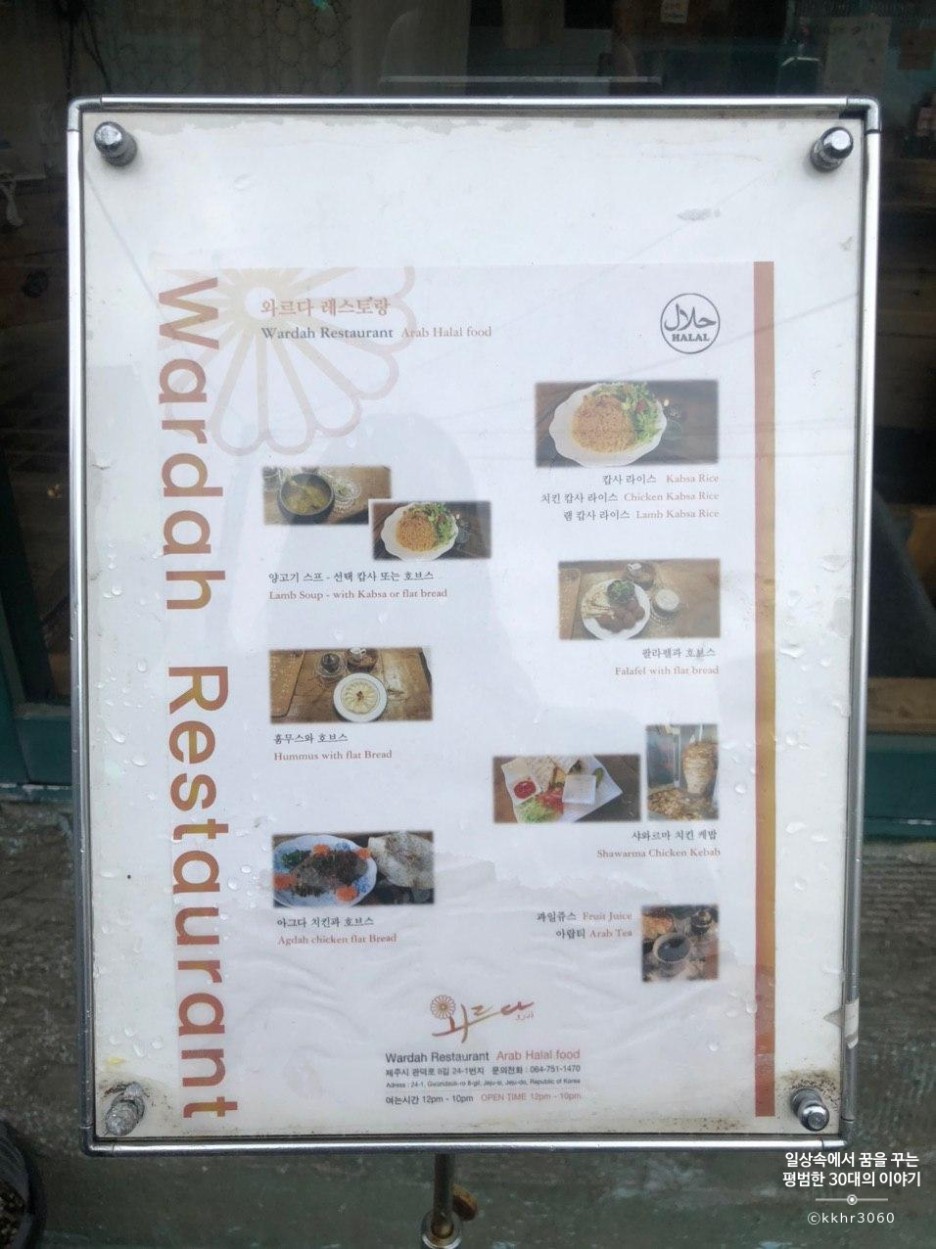 제주도 여행을 계획했을 때부터 스케줄에 넣어놨던 와르다레스토랑. 1년 전 오픈했을 때는 예멘 음식점이라고 해서 개업을 한 것으로 알고 있는데 지금은 아랍 음식점이라 소개되어 있다. 평상시에 접하기 힘든 예멘 음식을 먹어볼 수 있는 곳이라 이 음식점을 발견했을 때부터 꼭 가보고 싶다는 생각을 했었다. 느낌이 꼭 종로에 있는 사직동 그 가게와 너무 비슷하다. 사직동 그 가게는 티베트인들의 독립을 후원하기 위해 만들어진 공간이데 지금은 인도 음식, 음료 그리고 티베트 소품들을 팔고 있다.