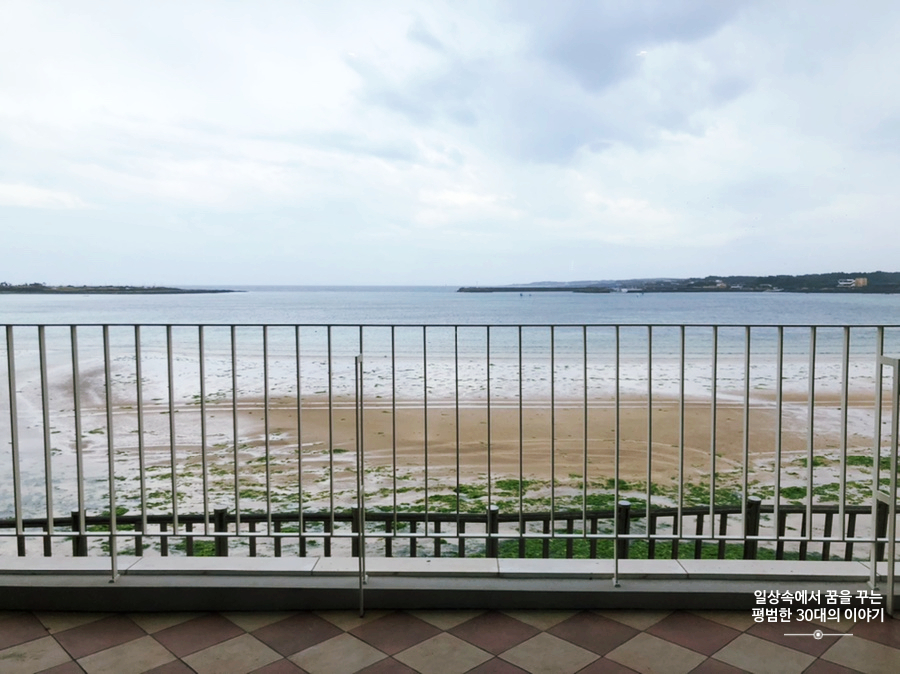 녹차 크루아상과 쿠앤크 크림빵은 크기도 무척 크고 맛있긴 했지만 과연 저 정도의 가격을 주고 먹을만한 건지는 의구심이 든다.(지극히 개인적인 의견) 특히 녹차 크루아상은 아무래도 안에 녹차 필링이 들어있다 보니 크루아상의 바삭함은 기대하기 어려웠다. 실망했던 건 한라봉차와 아메리카노의 맛이었는데 지극히 평범하다 못해 맛이 무척 아쉬웠다. 그나마 좋았던 것은 카페 안에서 볼 수 있는 아름다운 바다. 하지만 제주도 하면 바다가 아니던가. 사실 어딜 가나 찾을 수 있는 게 바닷가에 있는 카페다.