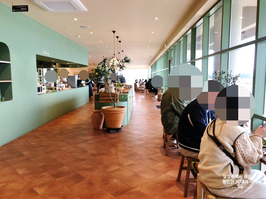 카페에 앉아서 보는 풍경이 멋지고 베이커리류가 맛있다고 해서 요즘 유명해진 서귀피안 베이커리. 우리가 방문한 날은 비바람이 치는 평일 오후였기 때문에 유명세에 비해 손님이 그다지 많지는 않았다. 다른 블로그나 인스타그램에 보니 주말이나 공휴일에는 손님이 바글바글한 것 같더라.