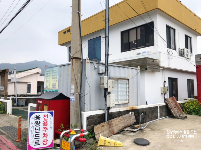 내가 애정 하는 제주도 몇 안 되는 식당 중 하나인 용왕난드르 식당. 처음 이곳을 알게 된 건 제주 올레길을 걸으면서였는데 한여름에 걷다 보니 살이 빨갛게 달아오른 상태에서 이른 저녁을 먹기 위해 들렀는데 식당 아주머니께서 내 피부를 보시고는 가지고 있던 알로에를 팔에 벅벅 발라주셨는데 그 모습에 무척 감동했다는. 동네 자체가 크지는 않지만 고즈넉한 분위기와 박수기정을 배경으로 하는 일몰은 그야말로 장관이라 그 뒤로도 용왕난드르 식당이 있는 동네를 종종 방문하곤 했다. 아직 사람들에게 많이 알려지지 않아 나 혼자 몰래 간직하고 있던 장소였는데 결혼사진 찍을 때 보니 사진작가님 사이에서는 이미 유명한 곳이라고 하더라. 그래서 일몰 때, 이 동네에서 결혼사진도 찍었다. 그러니 애정 하지 않을 수 없는 동네이다.