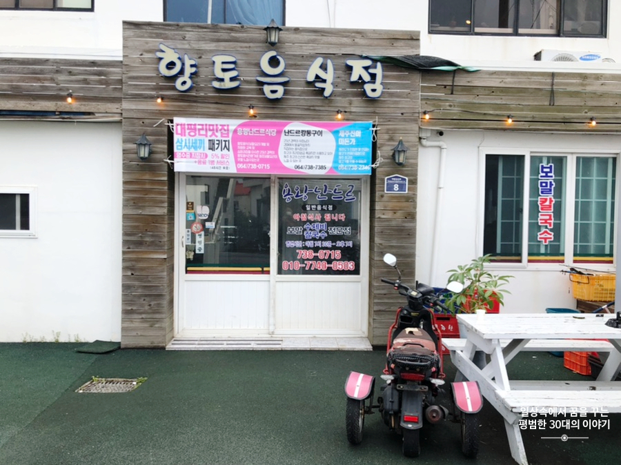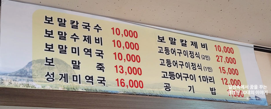 일 년에 3~4번은 가던 제주도인데 결혼하면서 일 년에 한 번 정도만 가게 되었고 그마저도 동쪽에 머무르는 시간이 많았다 보니 용왕난드르 식당은 정말 오랜만에 방문했다. 메뉴는 여전히 이전과 같아서 둘이서 보말칼국수, 보말수제비 그리고 고등어구이를 주문했다. 3년 전, 남편을 데리고 이 식당을 처음 방문했을 때, 남편이 이 집 고등어구이를 맛보고 연신 엄지를 올리던 기억이 새삼 떠올랐다.