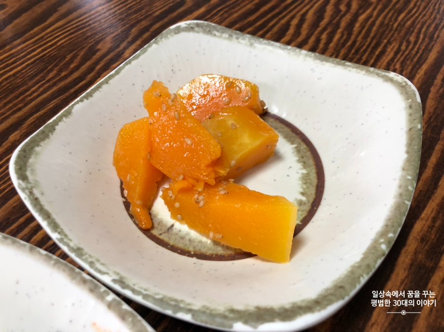 주문과 동시에 음식이 조리되기 때문에 준비되기까지 시간이 조금 걸리는 편이다. 밑반찬은 상황에 따라 조금씩 바뀌는데 내가 간 날에는 김치, 파김치, 단호박, 오징어젓갈 무말랭이 그리고 된장으로 버무린 김치가 나왔다. 반찬은 직접 만드시는 것 같은데 자극적이지 않고 집 반찬 같아서 좋았다. 얼마 지나지 않아 보말칼국수, 보말수제비 그리고 고등어구이가 나왔다. 맛은 여전히 좋았지만 아쉽게도 이전에 비해 보말의 양이 현저히 줄어들었음을 알 수 있었다. 아무래도 오른 물가에 같은 가격으로 음식을 팔아야 해서 그런 걸까? 고등어도 예전보다 크기도 작아지고 덜 통통해서 아쉬움을 감출 수 없었다. 아쉬움이 남았던 식사였지만 여전히 맛이 있고 추억이 많은 곳이라 다음에도 또 방문하게 되지 않을까 싶다.