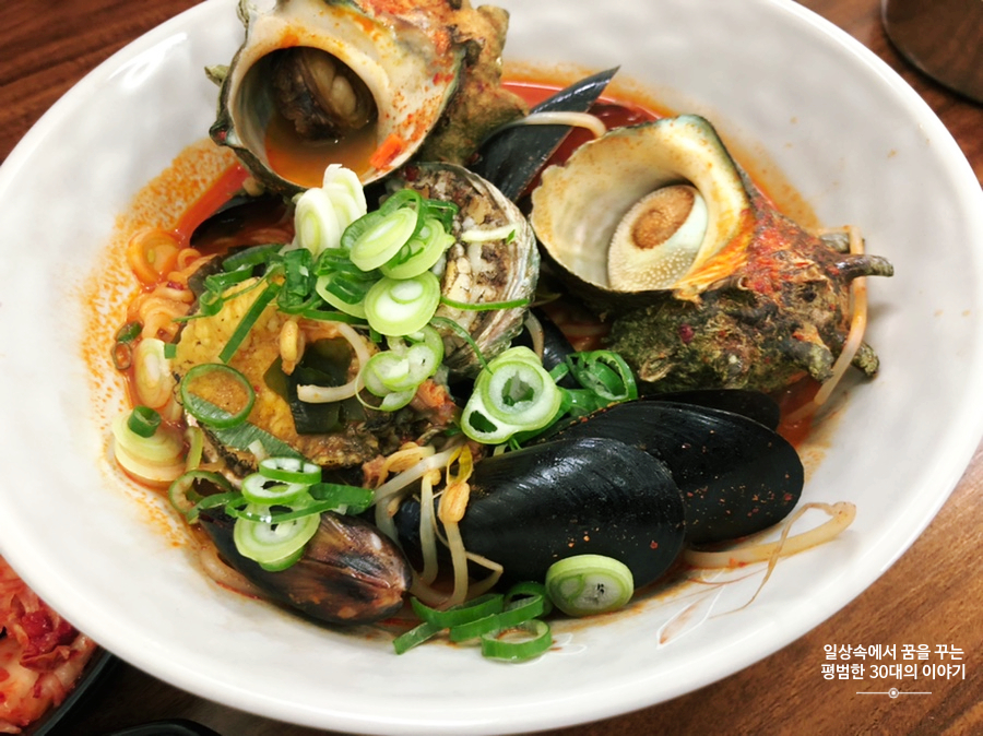 반찬은 셀프로 김치와 단무지가 있었는데 단무지가 무척 오도독 거리는 식감이라 내 취향이었다는! 지금 다시 사진만 봐도 너무 맛있어 보이는 김밥과 라면... 서울에도 고사리랑 톳 김밥 파는 데 있었으면 좋겠는데... 전복 해물라면은 홍합, 소라, 전복이 푸짐하게 들어가 있었고 사장님이 직접 소라와 전복은 손질해서 가져다주신다. 해물 들어간 라면이 맛이 없을 리 없으니 맛을 평하기 어렵다. 그리고 이번에 처음으로 톳이랑 고사리가 들어간 김밥을 먹어봤는데 왜 이렇게 맛있는 건지... 정말 그야말로 건강식으로 고사리와 톳이 아낌없이 팍팍 들어가 있다. 우리 둘 다 정말 잘 먹는 편인데 김밥 한 줄 자체가 워낙 두꺼워서 양이 상당하다. 나중에 간신히 다 먹었다는... 뭔가 특별한 맛은 아니지만 재료 자체가 특별하고 집에서 엄마가 재료를 아낌없이 팍팍 넣고 말아준 김밥 생각이 나는 그런 푸근한 김밥이었다. 제주도 간다면 언제든 또 방문할 예정! 그리고 무엇보다 사장님이 친절하시고 따스하셔서 더욱 좋았다. 때로는 흑돼지, 갈치조림처럼 근사한 메뉴보다 이런 분식처럼 간단한 메뉴가 더 기억에 남을 때가 있다.