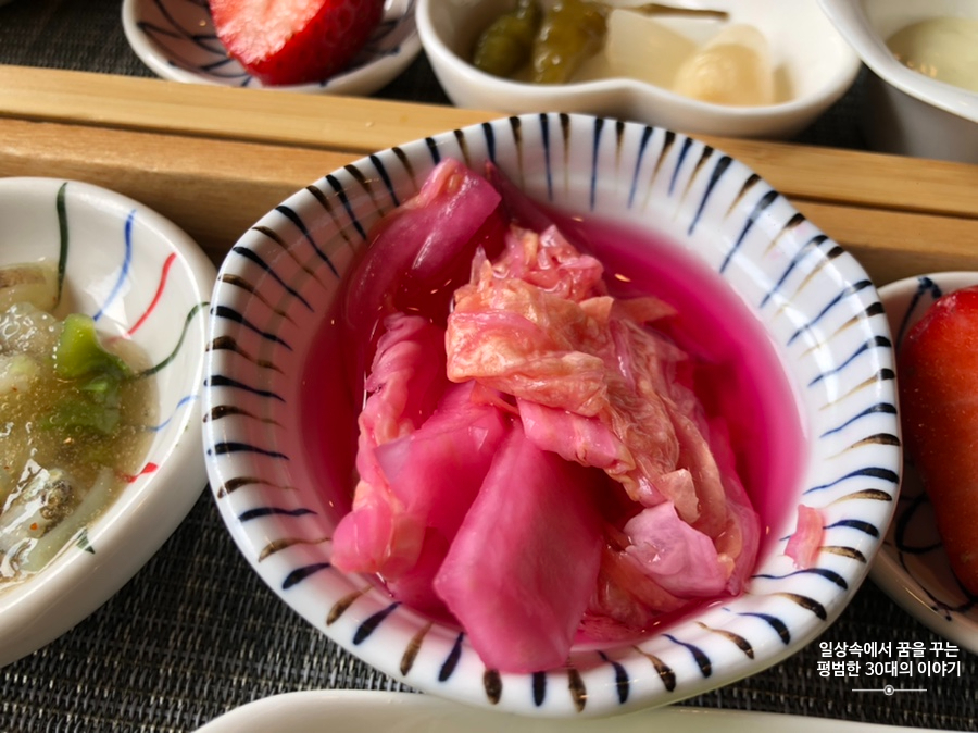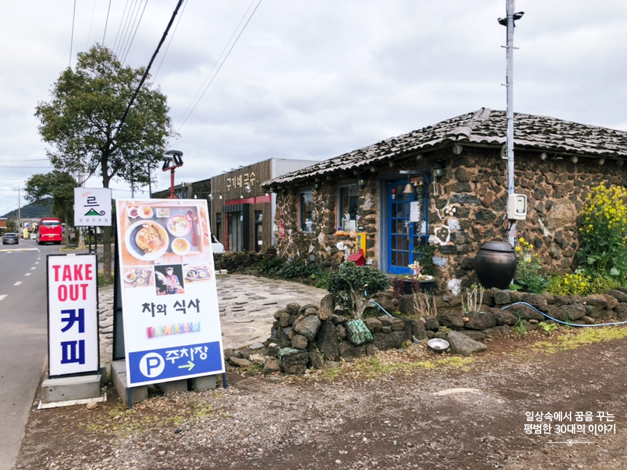 아침부터 세찬 바람을 맞으며 스냅사진을 찍고 나니 배가 어찌나 고프던지;;; 어디 멀리까지 갈 기운은 없고 해서 스냅사진 찍은 곳 근처 음식점을 알아보다가 '릇'이라는 곳을 발견했다. 음식점 이름이 무척 특이해서 제주도 단어인가 싶었는데 역시나 찾아보니 '릇'이 한라산을 타고 내려오는 바람을 뜻하고 그 바람을 맞고 자란 식재료들을 사용하고 그릇에 담는다는 의미를 담고 있다고 한다. 위치는 환상숲 곶자왈 공원, 저지 오름, 오설록 티 뮤지엄에서 가깝다.