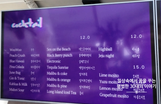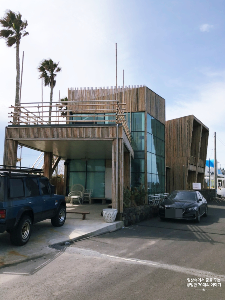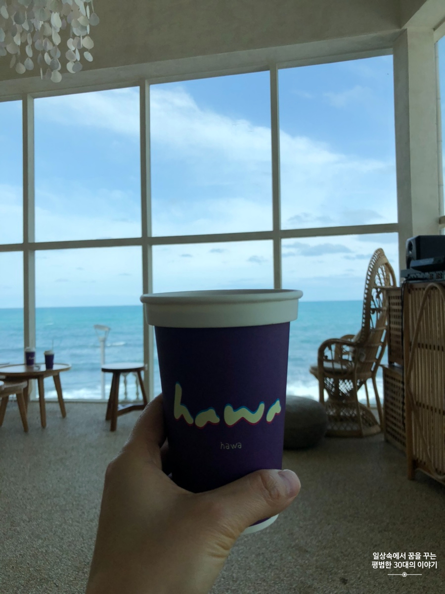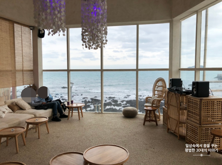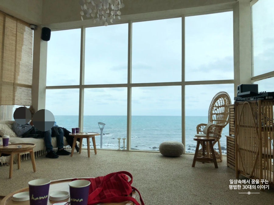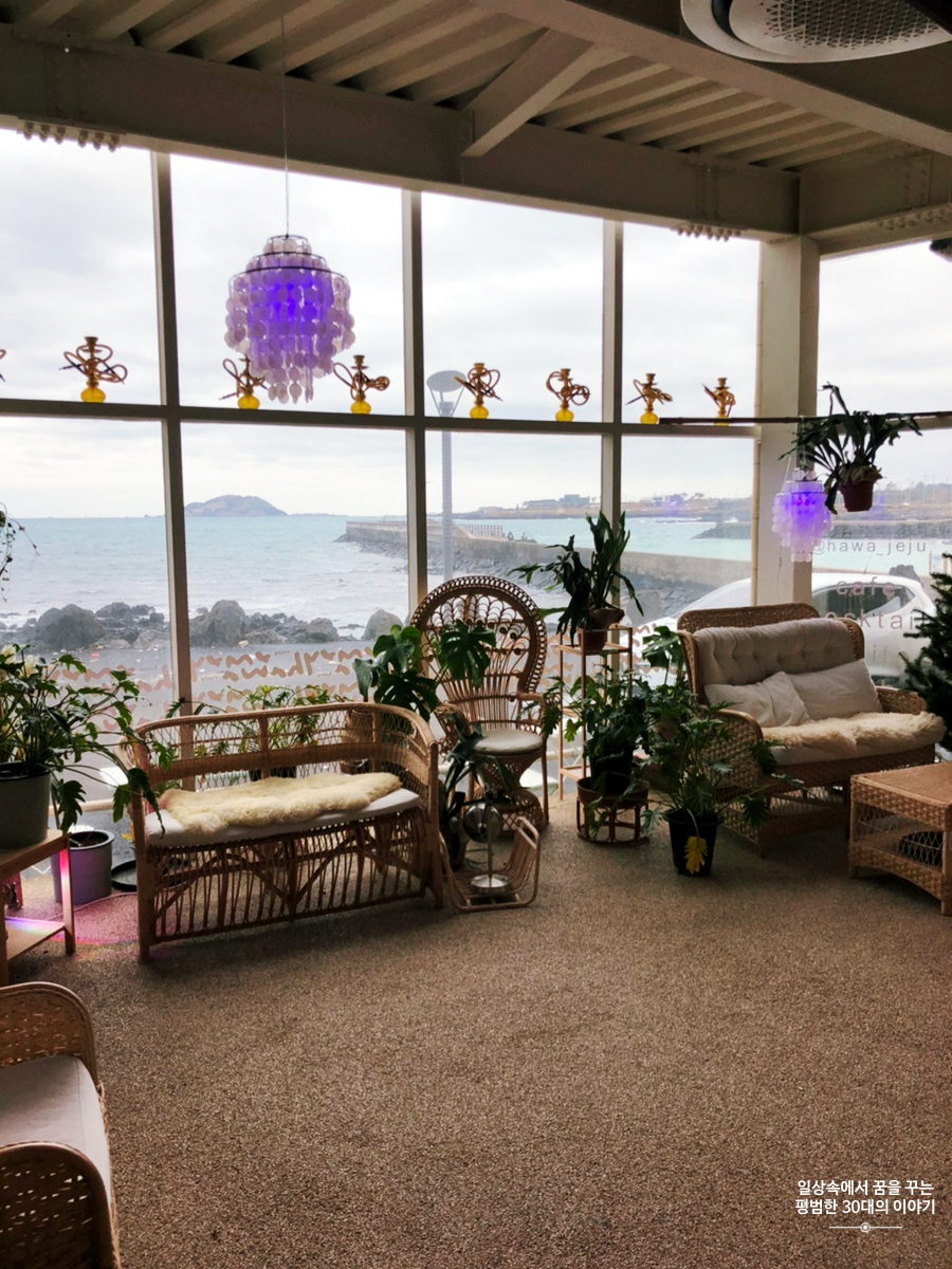 우연히 인스타그램에서 보고 알게 되어 가게 된 카페 하와. 판포포구에 위치해있고 카페 내부에서 보이는 바다 풍경이 인상적이다. 그런데 1층, 2층 모두 좌석이 많지 않아 조금만 유명해져도 가기 힘들 것 같다. 지금은 아직 유명해지기 직전이라 우리가 방문했을 때는 편히 몇 시간씩 앉아있다 올 수 있었다. 음료와 디저트류는 다양하지는 않았지만 기본적인 것들은 다 있고 칵테일을 판다. 음료 맛은 그저 그랬지만 무척 편한 소파에 앉아 멋들어진 제주도 바다 풍경을 보고 있노라면 음료 맛 따위는 중요해지지 않기도 하다.