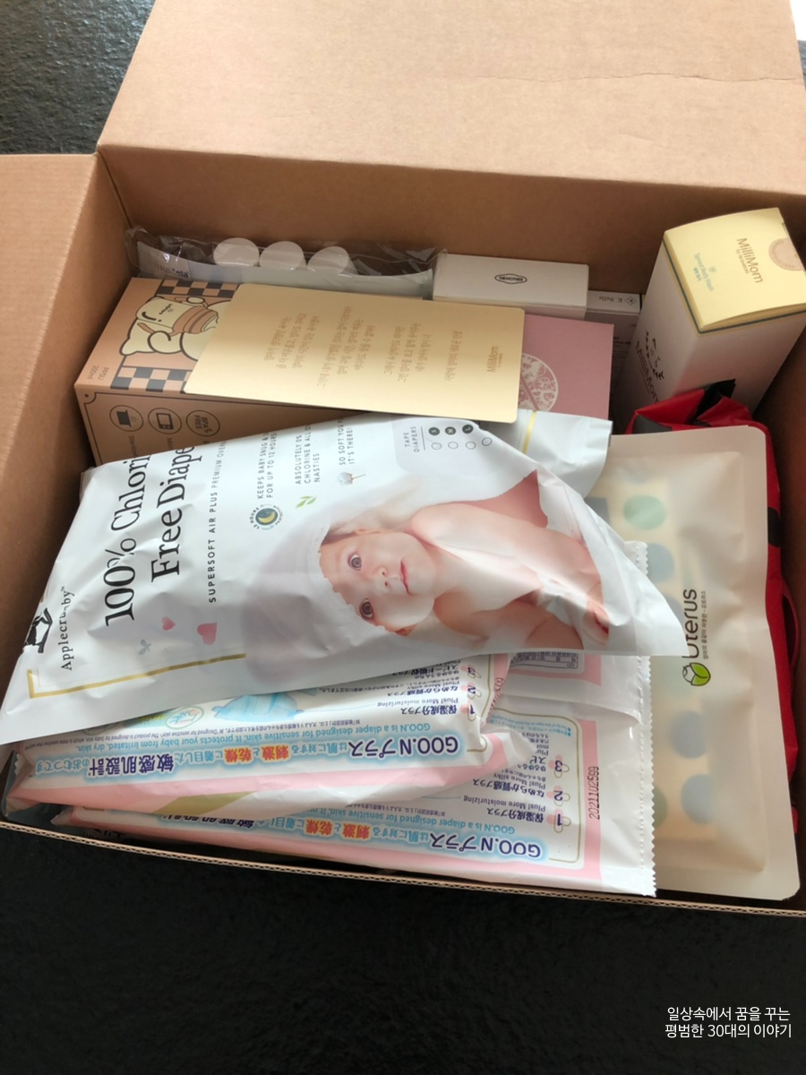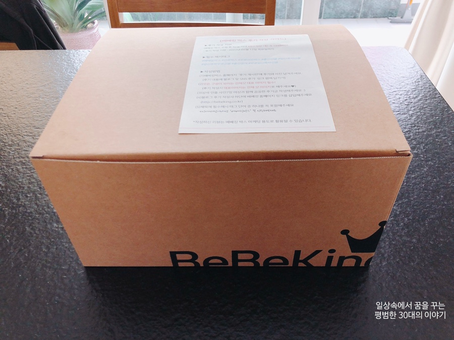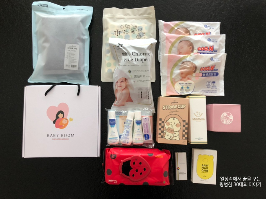 임신을 하면서 알게 된 산모박스! 무료로 주는 곳도 있고 돈을 일부 지불해야 하는 곳도 있다. 베베킹 같은 경우 출산을 앞둔 산모에게 필요한 여러 제품을 무료로 제공해 준다.(택배비는 착불) 이런 이벤트를 하는 곳이 몇 군데 있는데 마미박스, 미즈톡톡, 우리아이연구소, 유하박스, 맘스포유, 맘스홀릭박스 등이 있다. 물론 모두에게 주는 게 아니고 매달 무료 산모박스 이벤트를 진행하고 거기에 당첨이 되면 제공한다. 많은 사람이 참여하기 때문에 당첨되기는 하늘에 별 따기인 듯! 그런데 운이 좋게 이번에 베베킹박스에 당첨이 됐다. 어찌나 기분이 좋던지!!! 제공되는 제품은 매달 조금씩 바뀌는 것 같다. 나는 2월에 참여했고 배송은 3월 마지막 주에 발송되었다. 2월 베베킹박스는 12가지 제품으로 구성되어 있었다. 누누베베 물티슈 72매 1개, 유하다 베베 모이스트 크림 300ml 1개, K.Belle 화이트닝 세럼 샘플, 유비맘 빨대컵 1개, 밀리맘 새싹 워시 200ml 1개, 기저귀 2가지 종류, 유트러스 속싸개 1개, 맘스네이처 아기 타월 160g 1개, Mustela 샘플, 아기용 손톱깎이 세트 1개, 베이비붐 긴팔 우주복 1개, 베이비붐 턱받이 1개 그리고 가제손수건이 베베킹 박스에 들어있었다. 내가 아직 준비하지 못한 제품으로만 구성되어 있어 부자가 된 기분이었다는! 베베킹 감사합니다.