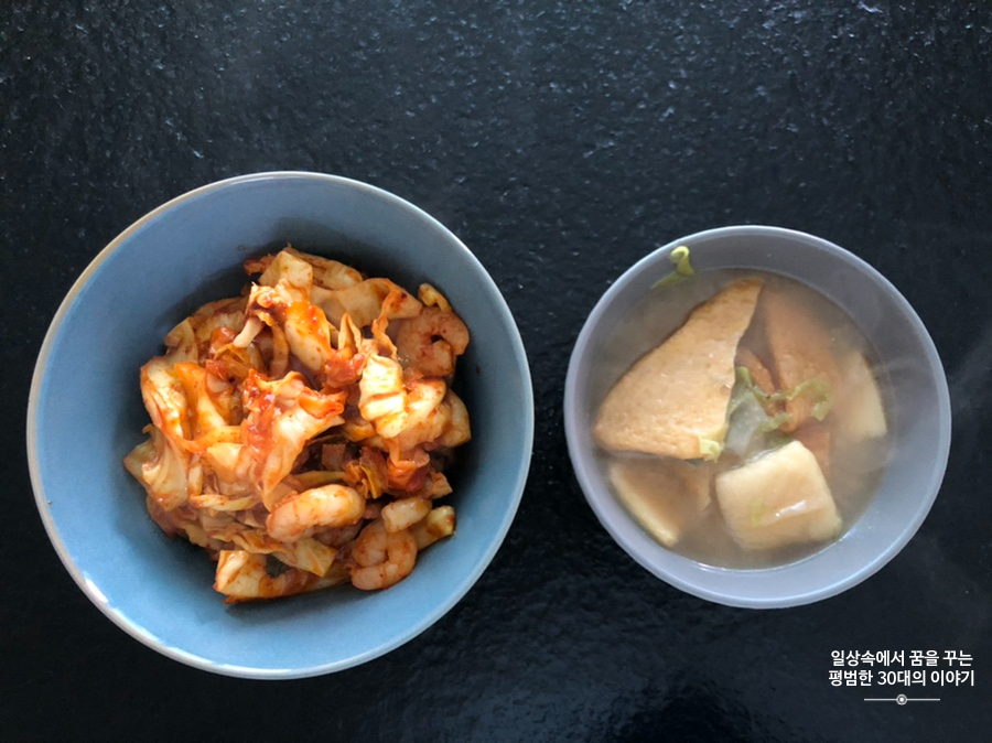 메뉴: 양배추 새우 덮밥, 화요일에 먹고 남은 오뎅국