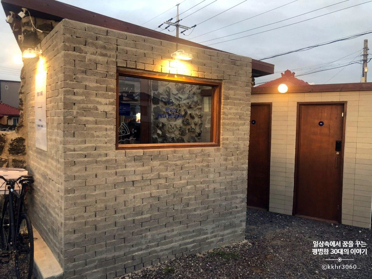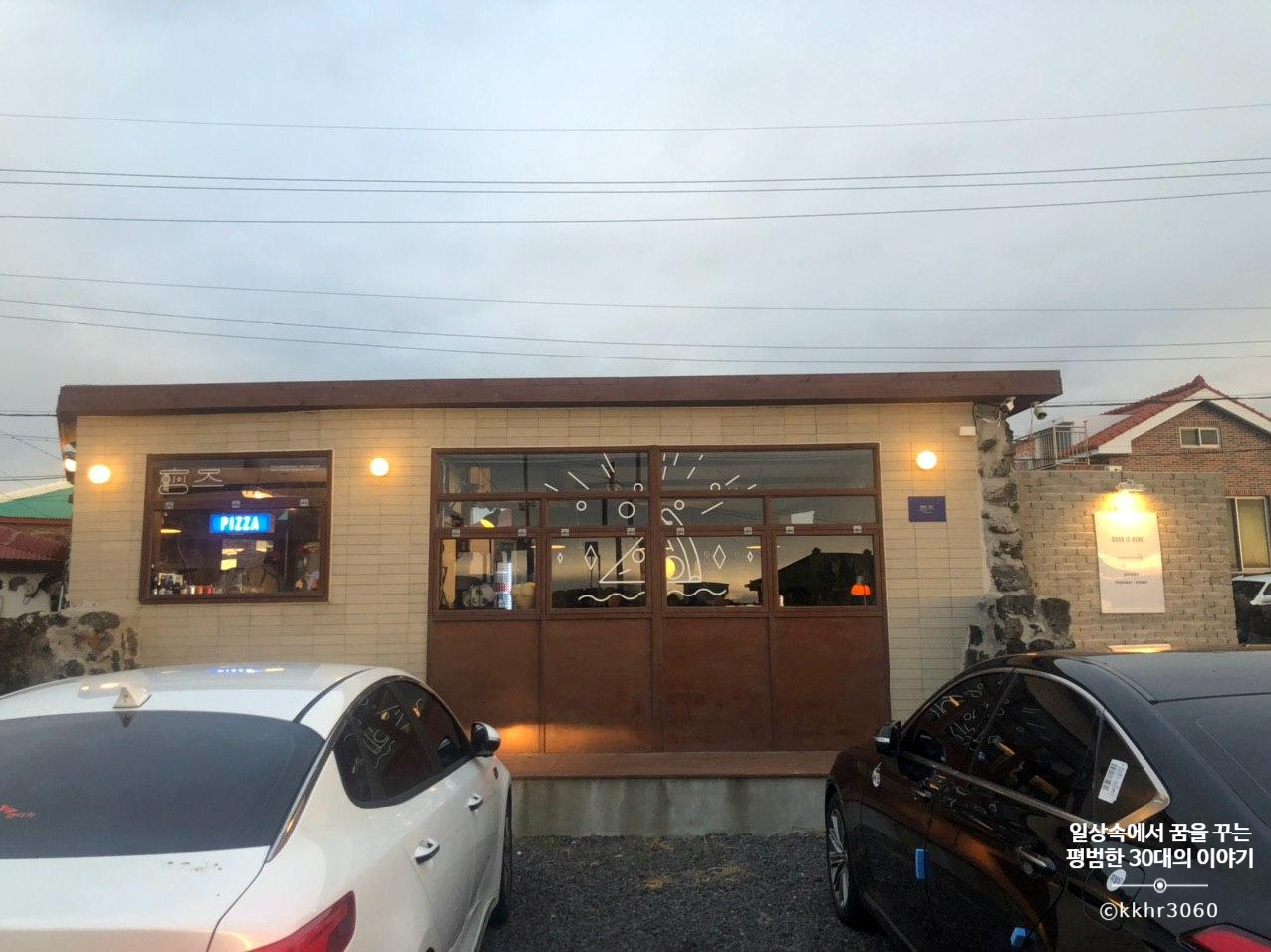 월정리에서 귀여운 소품을 사기 좋은 숨비아일랜드에 들렸다가 이것저것 구경하다 보니 시간이 너무 지체되 미리 검색해놨던 대부분의 식당들이 문 닫을 시간이 되어버렸다. 제주도의 작은 마을에 위치해있는 식당은 보통 8시면 문을 닫는 것 같다. 그래서 짝꿍이 폭풍 검색해서 찾은 피자가게 '행즈'. 월정리 해변에서 5분 거리에 있고 바로 바닷가에 위치해 있어 찾아가는 것은 어렵지 않다. 영업시간이 조금 특이한데 저녁 6시에 열어 저녁 10시에 닫고 주문은 9시까지 가능하다.