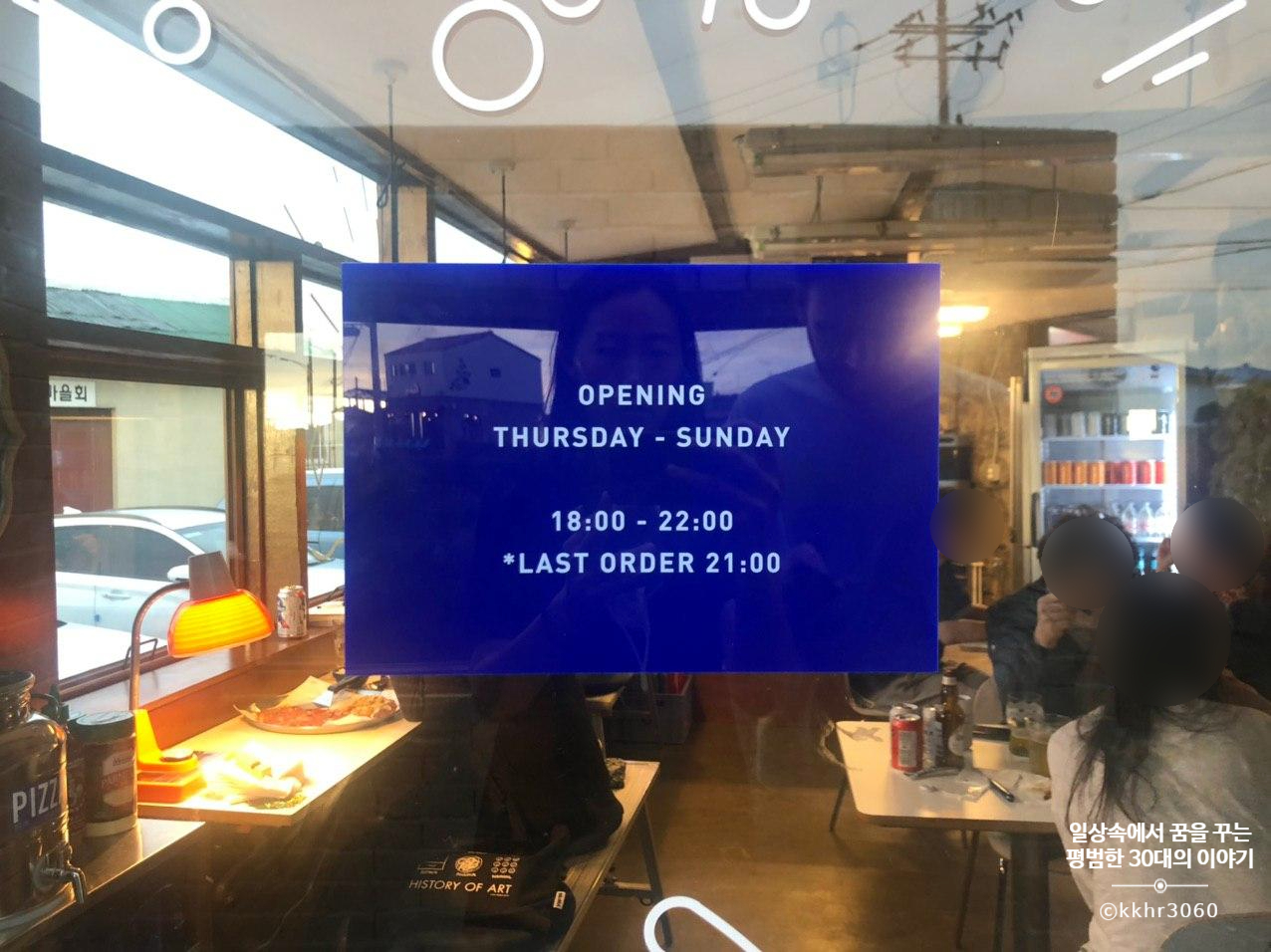 영업시간: 목요일~일요일 18:00~22:00 / 월요일~수요일 휴무