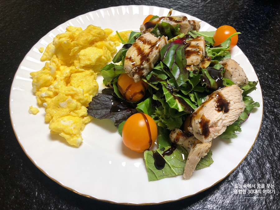 메뉴: 오믈렛, 닭가슴살 샐러드
