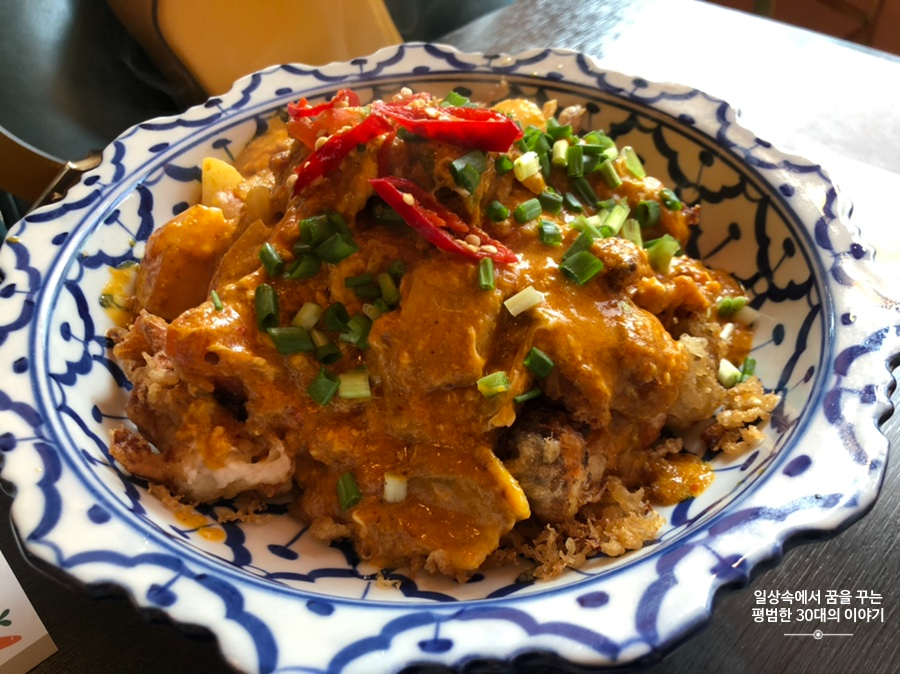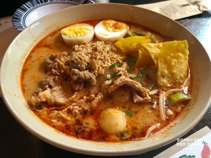 점심: 나(알로이 방콕에서 뿌 팟퐁 커리, 꾸웨이 띠아오 똠양), 남편(베이글, 토요일에 먹고 남은 라자냐)