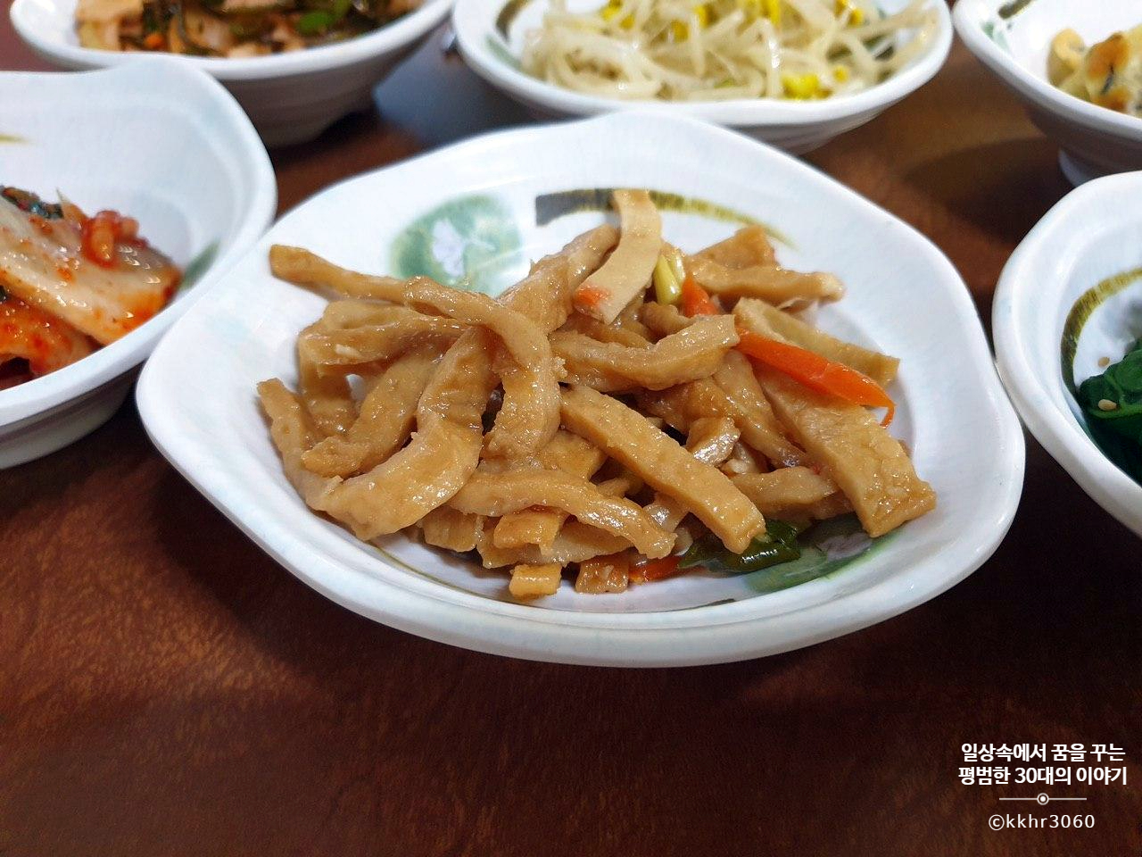 불 맛이 나는 돌문어볶음이었는데 소스가 재료에 잘 베여있어 더욱 맛이 있다. 돌문어를 질리도록 먹을 수 있었던 저녁이었고 무엇보다 소면이 돌문어볶음 소스와 너무 잘 어울려 짝꿍은 매워서 연신 물을 들이켜면서도 소면은 포기할 수 없다며 소면의 대부분을 혼자 먹어치웠다.