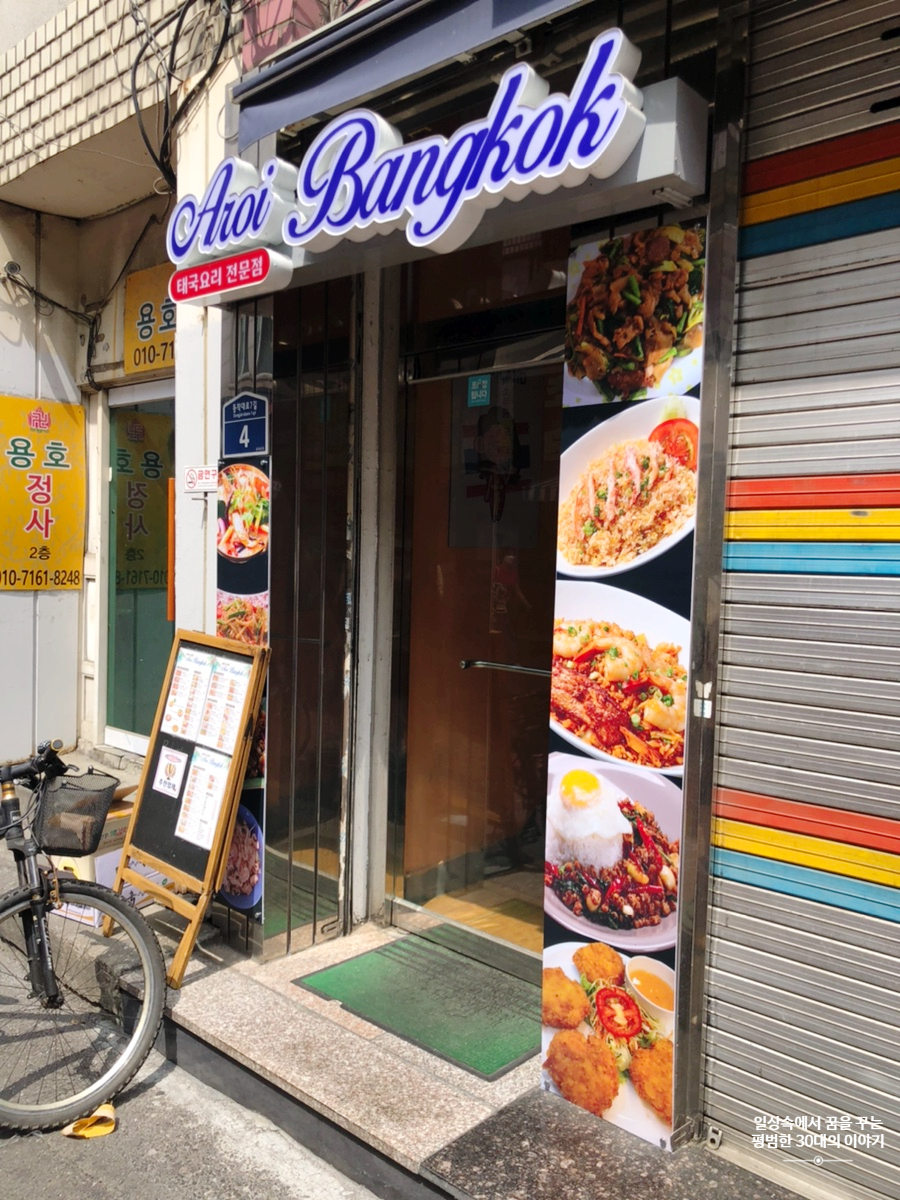 ㅇ 오랜만에 만난 대학교 친구와 함께 방문한 알로이 방콕! 생각보다 사당역 주변에 식당과 카페 중에 일요일에 영업을 하는 곳이 많이 없어서 고른 곳이긴 하지만 무척 만족했던 곳이다. 우리는 둘 다 맛집을 좋아하면서도 오랫동안 대기하는 것을 그다지 좋아하지 않기 때문에 보통 가고 싶은 식당을 미리 정해놓고 영업 시작 시간에 맞춰 만나곤 한다. 이날도 알로이 방콕 영업 시작 시간에 맞춰 식당 앞에서 만났다. 사당역 10번 출구에서 그다지 멀지 않은 곳에 위치해 있고 큰 대로변에 가까이 있기 때문에 찾기는 어렵지 않다.