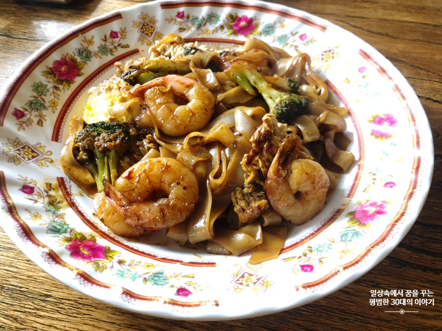 내부는 그다지 넓지 않았는데 4인석 테이블이 5개 정도 되는 것 같다. 메뉴도 메뉴판 한 면이 전부일 정도로 단출하다. 라오스는 안 가봐서 라오삐약에서 파는 이 메뉴들이 실제 라오스 현지인이 먹는 메뉴인지는 모르겠지만 어쨌든 음식점 운영은 모두 현지인(내 눈에는 라오스인으로 보였는데 진실은 모르겠음)이 직접 하시기에 조금 더 신뢰가 갔다. 우리는 둘이서 도가니 국수(10000원), 쿠아 미(9500원) 그리고 즌만꿍(8000원)을 주문했다. 무척 배가 고픈 상태였어서 4가지 정도 주문하려고 했으나 종업원이 둘이서 먹기에는 많다며 만류하여 바로 포기! 우리가 첫 손님이라 그런 건지 아니면 원래 조리를 하는데 시간이 얼마 안 걸리는 건지 주문하고 얼마 되지 않아 주문한 메뉴가 모두 나왔다. 도가니 국수(소고기 쌀국수)와 쿠아 미(매콤한 볶음 국수)에 들어가는 면은 모두 내가 평소에 먹어봤던 쌀면보다 딱딱한 편이었는데 먹는 게 불편하거나 거슬릴 정도는 아니었다. 쿠아 미는 전혀 맵지 않았고 내가 평상시에 먹어봤던 팟타이 맛이랑 유사했고 도가니 국수도 국물 맛이 조금 색다르긴 했지만 평상시에 먹어봤던 쌀국수랑 유사했다. 즌만꿍은 새우를 다진 걸 튀긴 거라 맛이 없을 수가 없다는! 맛은 전반적으로 크게 자극적이지 않고 담백해서 먹기에 편했다. 뛰어나게 맛있는 맛은 아니지만 그래도 평타 이상은 하는 듯! 참고로 엄마는 엄청 만족하면서 드셨다는... 둘이서 먹기에 양도 적당했다. 아쉬웠던 점은 위생이었는데 테이블이나 바닥 등 구석구석을 둘러보니 깨끗하게 관리되는 것 같지는 않았다.
