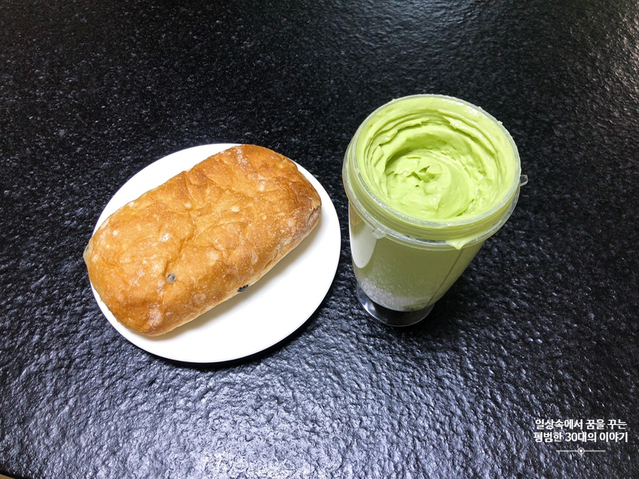 저녁: 아보카도 푸라푸치노, 치아바타 |