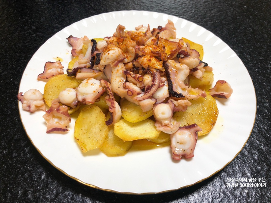 뿔뽀 - 감자, 소금, 후추, 허브가루, 문어, 삐미엔또가루, 올리브오일