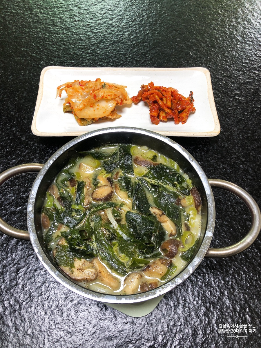 들깨 칼국수 - 미역, 표고버섯, 곰국, 들깨, 소금, 참기름