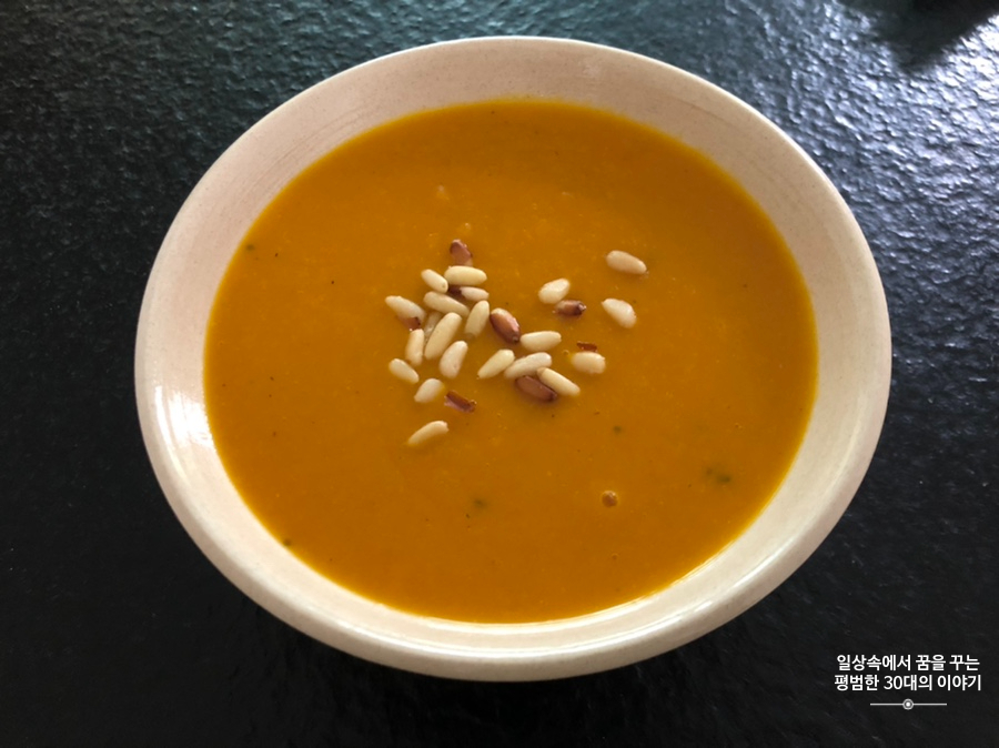 단호박죽 - 단호박, 우유, 찹쌀, 잣