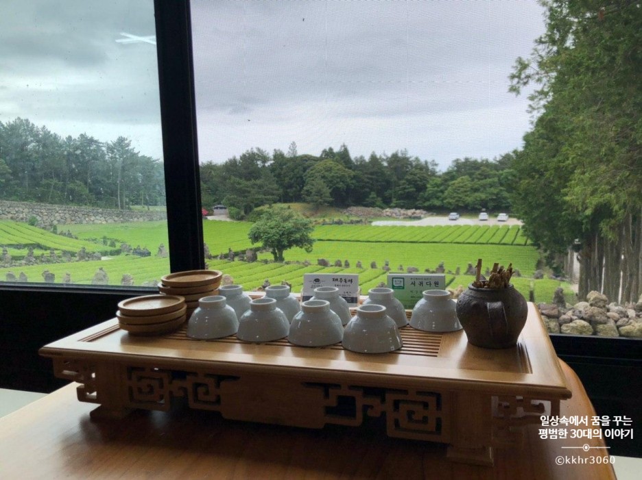 어쨌든 그래서 제주도 여행을 가면 가끔 오설록 티 뮤지엄을 가곤 했는데 이제는 너무 관광지화되어 사람들도 많고 녹차밭도 너무 작아 잘 안 가게 된다. 그러다가 제주도에서 차를 재배하는 곳들이 몇 군데 있다고 하여 검색을 해봤더니 생각보다 꽤 많은 다원들이 제주도에 산재해있었다. 그런데 그중에서 서귀다원을 선택하여 가게 된 이유는 차밭을 보며 차시음을 할 수 있는 다실 공간이 마련되어 있기 때문이었다.