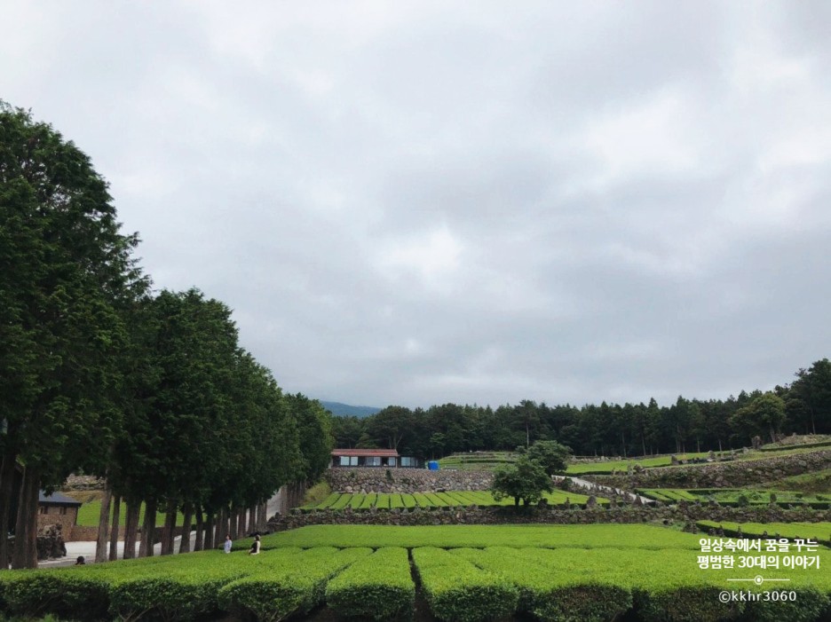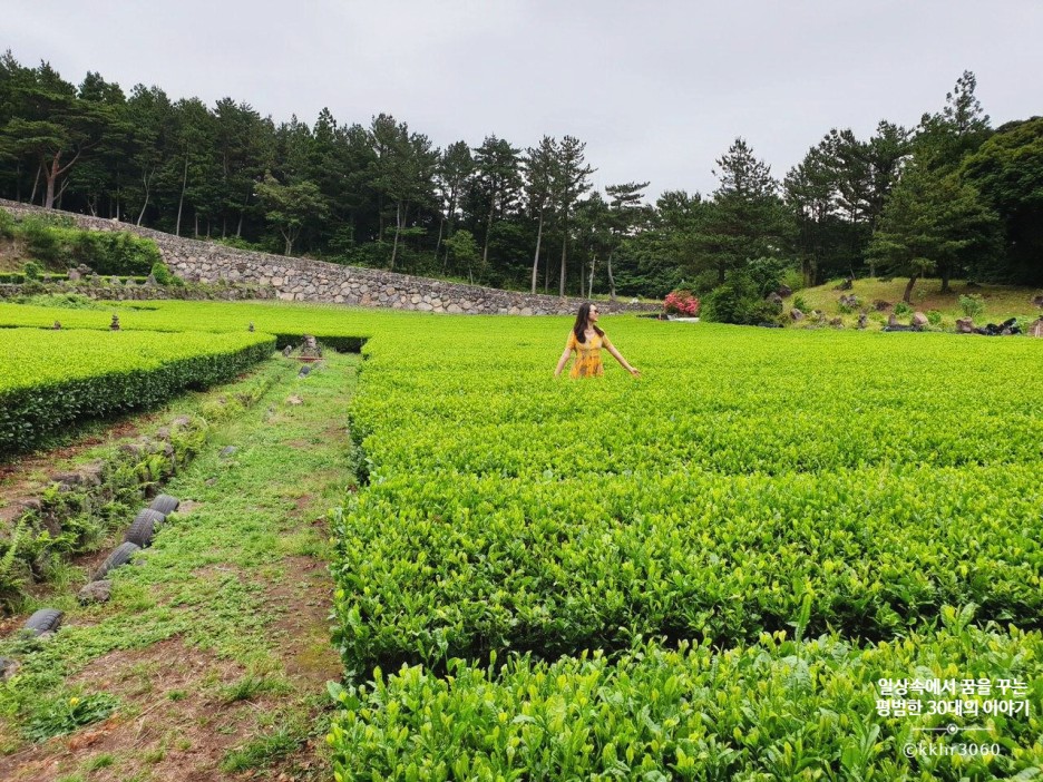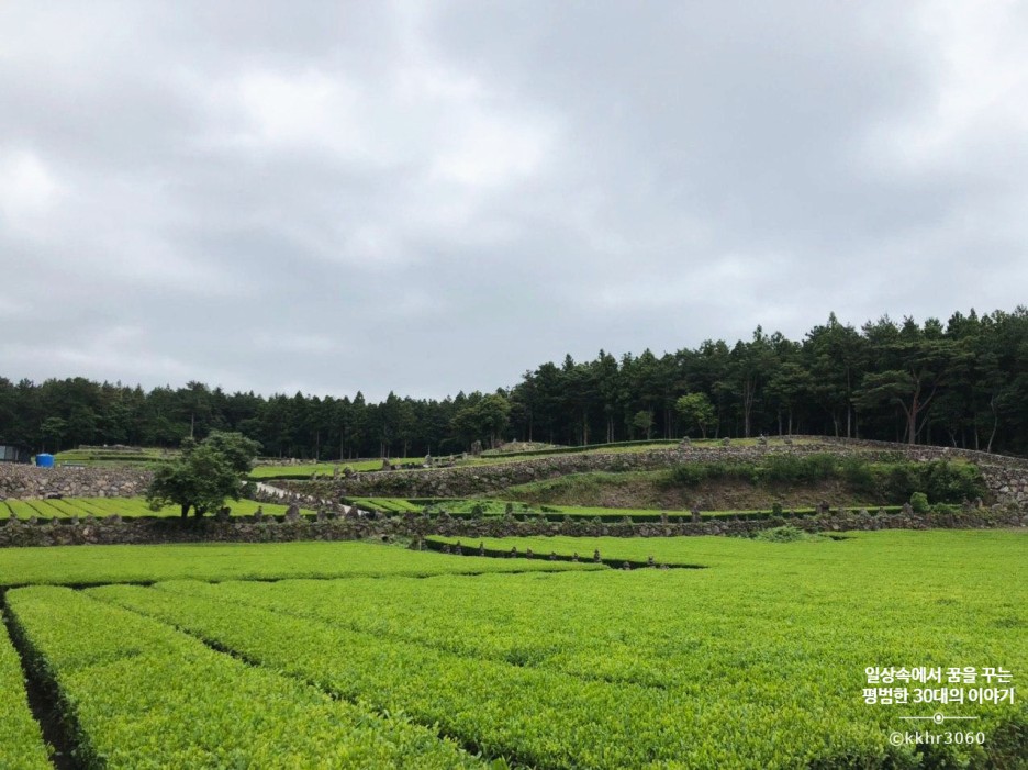 주차공간은 생각보다 꽤 넓고 깔끔하게 잘 정돈되어 있다. 주차장 뒤로는 모두 녹차밭으로 꽤 넓다. 산책하기에도 길이 잘 되어있어 천천히 녹차밭을 감상하며 걷기 참 좋다. 아직 알려지지 않은 곳이라 아직 입장료도 없고 사람도 별로 없어서 녹차밭에서 마음껏 사진을 찍었다. 물론 녹차잎 상하지 않도록 조심 또 조심하면서 사진을 찍었다. 그 정도 매너는 당연!!!