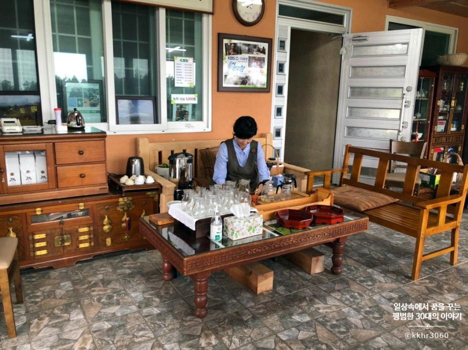 예쁜 다기에 녹차를 쪼르르 따라 한 모금 마신 후, 직접 만드셨다는 대나무 이쑤시개로 귤피를 찍어 먹으면 참 세상 부러울게 하나도 없다. 제주도에서 뭔가 새로운 경험을 하고 싶다거나 차를 좋아한다거나 사람들에게 아직 잘 알려지지 않은 곳이 가고 싶다거나 힐링할만한 장소를 찾고있다면 강력 추천!! 다실 운영시간은 그때그때 다르니 직접 전화를 해보고 방문하시는 게 좋을 것 같다.