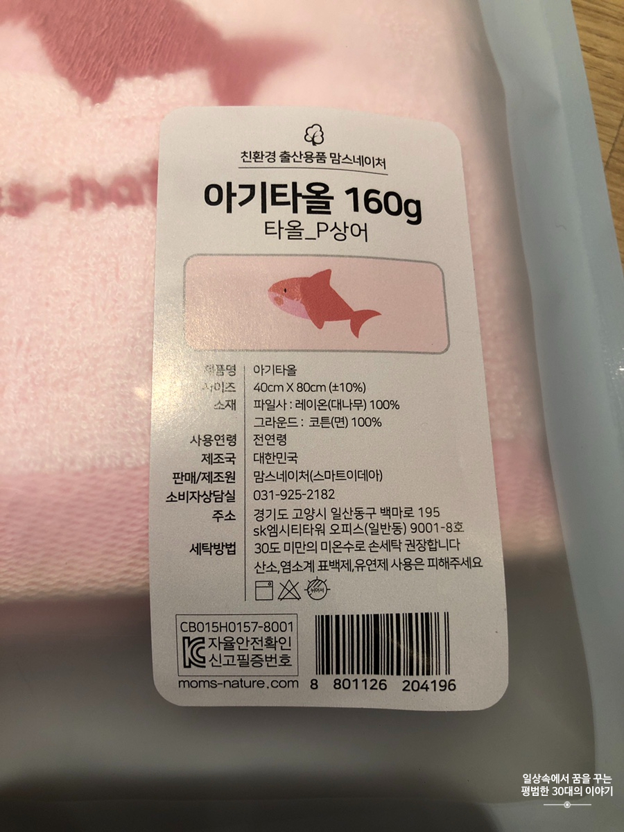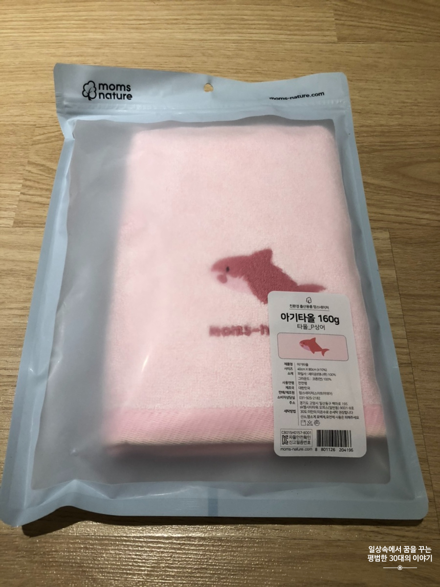 분홍색 맘스네이처 밤부 세면 타월에 귀여운 돌고래 자수가 놓여 있고 사이즈는 일반적으로 사용하는 수건 크기이다. 아들 맘이지만 핑크도 좋다. 받자마자 세탁기에 돌려 널어놓았다. 벌써 임신 32주 차라 몸이 더 무거워지기 전에 빨래를 마무리하고 싶어 지난주부터 열심히 세탁기를 돌리고 있다.