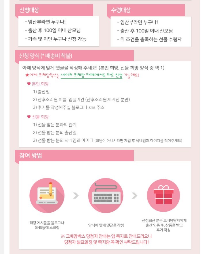 이벤트는 매번 진행되고 있으니 아래 크라잉 베베 웹사이트에서 신청하면 된다.
