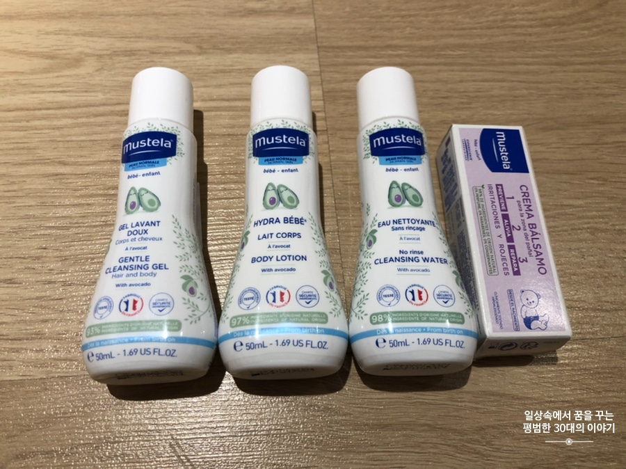 무스텔라는 사실 임신하기 전까지는 듣도 보지도 못했던 브랜드였다. 그러다가 이번에 무스텔라 여행용 키트 4종을 받아서 남편에게 보여주니(남편 스페인 출생) 본인 어렸을 때 사용하던 제품이 무스텔라라고 하더라;; 그럼 엄청 오래된 브랜드라는 의미인데... 까다로운 부모들의 혹독한 평가에서 여태까지 살아남았다는 것은 어쨌든 품질은 좋다는 의미이기도 하니까 샘플을 다 사용하고 나면 본품을 사서 사용할까 생각 중이다.