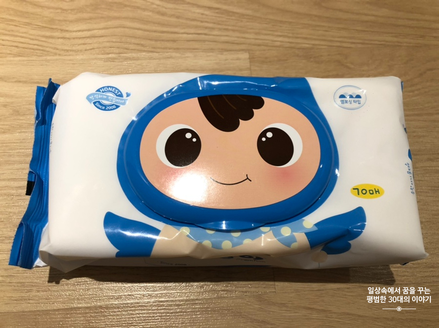 평상시에 물티슈를 전혀 사용하지 않는데 아기가 생기면 어쩔 수 없이 사용하게 된다고 한다. 이번에 받은 순둥이 프리미엄 무향 엠보싱 캡형(70매)은 엠보싱이라 엉덩이 닦아주고 할 때 좀 더 자극이 덜 되지 않을까 싶어 일반 물티슈보다는 더 마음에 든다.