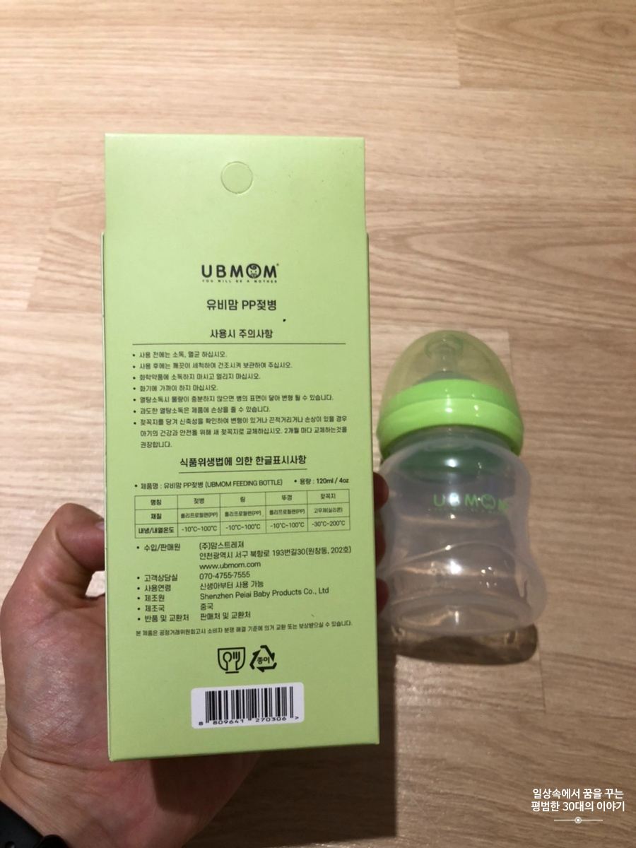 유비맘 아기 젖병 120ml(PP 젖병)은 신생아 때 사용할 수 있는 사이즈인데 PP 재질인 게 조금 아쉬웠지만 아직 젖병을 준비하지 않은 나로서는 한 번 시험 삼아 써볼 만할 것 같아. 써보고 좋으면 추가 구매할 생각이다.