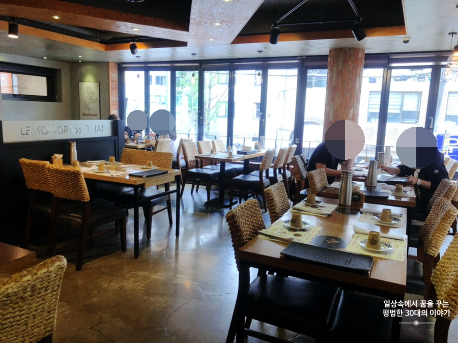 집에서 재택근무만 하다 보니 집에서 매번 혼자 밥해 먹는 것도 지겹고 이제 다음 달이면 출산이니 돌아다닐 수 있을 때 돌아다니자 싶어서 점심시간에 남동생 회사 근처에서 같이 점심을 먹었다. 그 먼 거리를 임산부가 지하철을 타고 왜 오냐고 타박이었지만 나는 이렇게나마 점심시간에 잠깐 바깥바람 쐬고 누가 해주는 음식 먹는 게 기쁨이라고 반박했다. 남동생이 본인 회사 근처에 있는 맛집 목록을 주었는데 그중에 보자마자 가고 싶었던 곳이 레몬그라스 타이! 다른 건 내가 집에서 해먹을 수 있는 메뉴였지만(물론 음식점에서 사 먹는 것보다는 맛이 없지만) 태국 음식은 내가 집에서 해먹을 수 있는 메뉴가 아니므로 무조건 레몬그라스 타이로 고고씽!