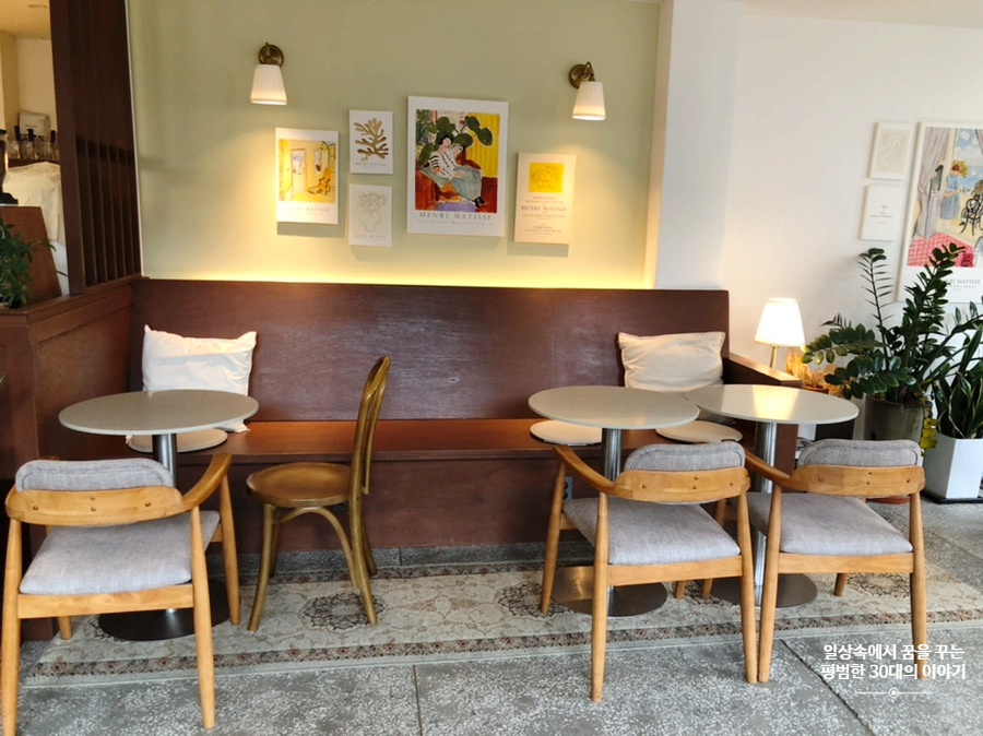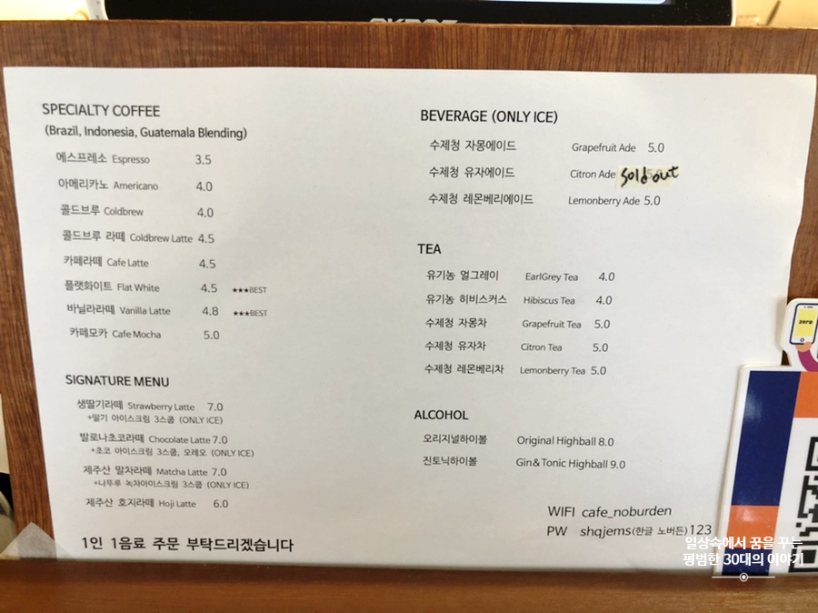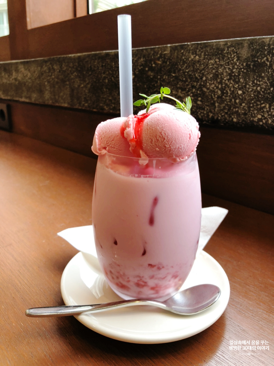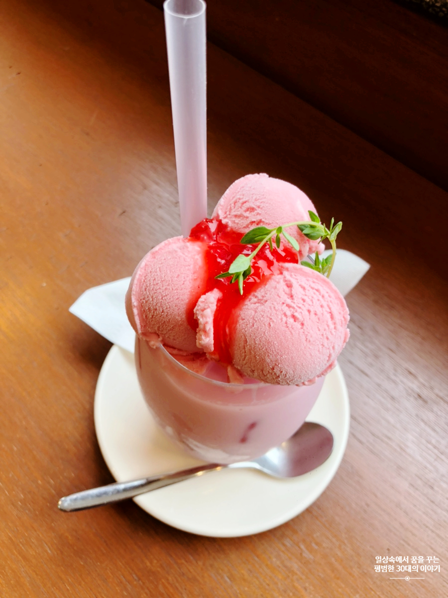 산후 도우미를 신청하러 영등포 보건소에 갔다가 콧바람도 쐴 겸 들른 노버든 카페. 원래는 아메리카노가 마시고 싶었으나 디카페인이 없어서 이 카페의 시그니처 메뉴 중 하나인 생딸기 라떼(7000원)을 주문했다. 가격대가 좀 있지만 다른 곳의 딸기 라떼와 다르게 위에 푸짐하게 아이스크림이 올려져 있으니 그것만으로도 만족! 내부 공간은 그다지 크지 않지만 단정하고 정갈하며 차분하다. 점심시간이라 테이크아웃 손님도 많고 마시고 가는 손님도 많았다. 콘센트도 군데군데 넉넉하게 있어 컴퓨터 하기에도 좋다. 카페 내에 상주하고 있는 강아지가 있던데 엄청 귀요미라 손님들한테 사랑을 듬뿍 받겠더라. 이 주변에 산다면 종종 일하러 들를 것 같은 동네의 특색 있는 카페~ 우리 동네에는 왜 이런 카페가 없는 거지... 아쉬울 따름;